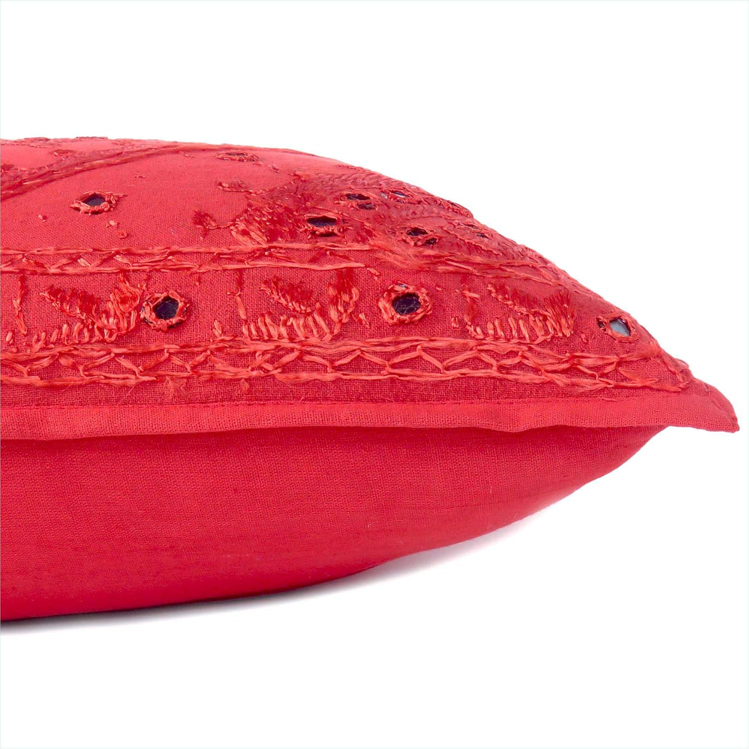 Eyes of India Embroidered Decorative Boho Throw Pillow Cover with Mirrors, Handmade Bohemian Accent Cushion Case for Sofa Couch Bedroom Living Room (Red, 16" x 16")