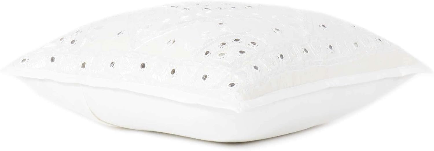 Eyes of India Embroidered Decorative Boho Throw Pillow Cover with Mirrors, Handmade Bohemian Accent Cushion Case for Sofa Couch Bedroom Living Room (White, 16" x 16")