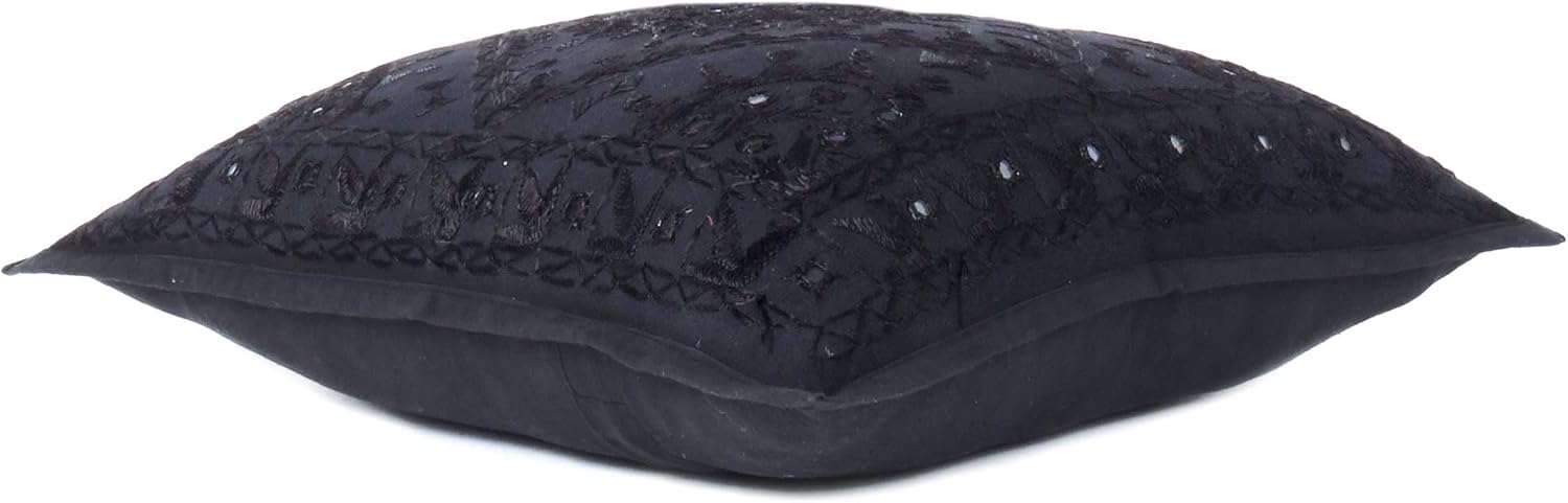 Eyes of India Embroidered Decorative Boho Throw Pillow Cover with Mirrors, Handmade Bohemian Accent Cushion Case for Sofa Couch Bedroom Living Room (Black, 24" x 24")