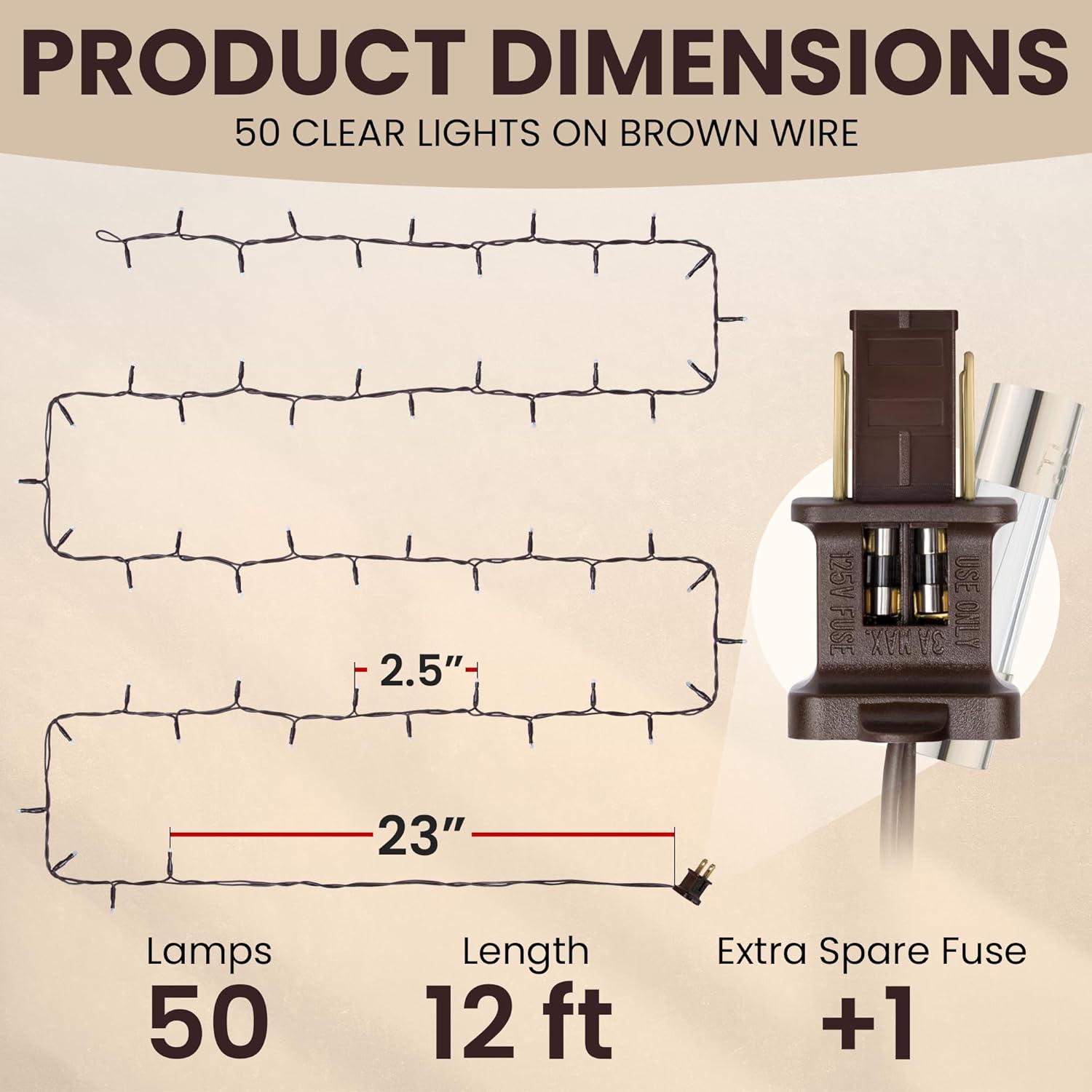 Teeny Lights 50Ct Brown - Warm Mini Bulbs with Brown Cord - Indoor/Outdoor Water-Resistant Farmhouse String Lights for Patio, Wedding, Home Decor, Rustic Christmas