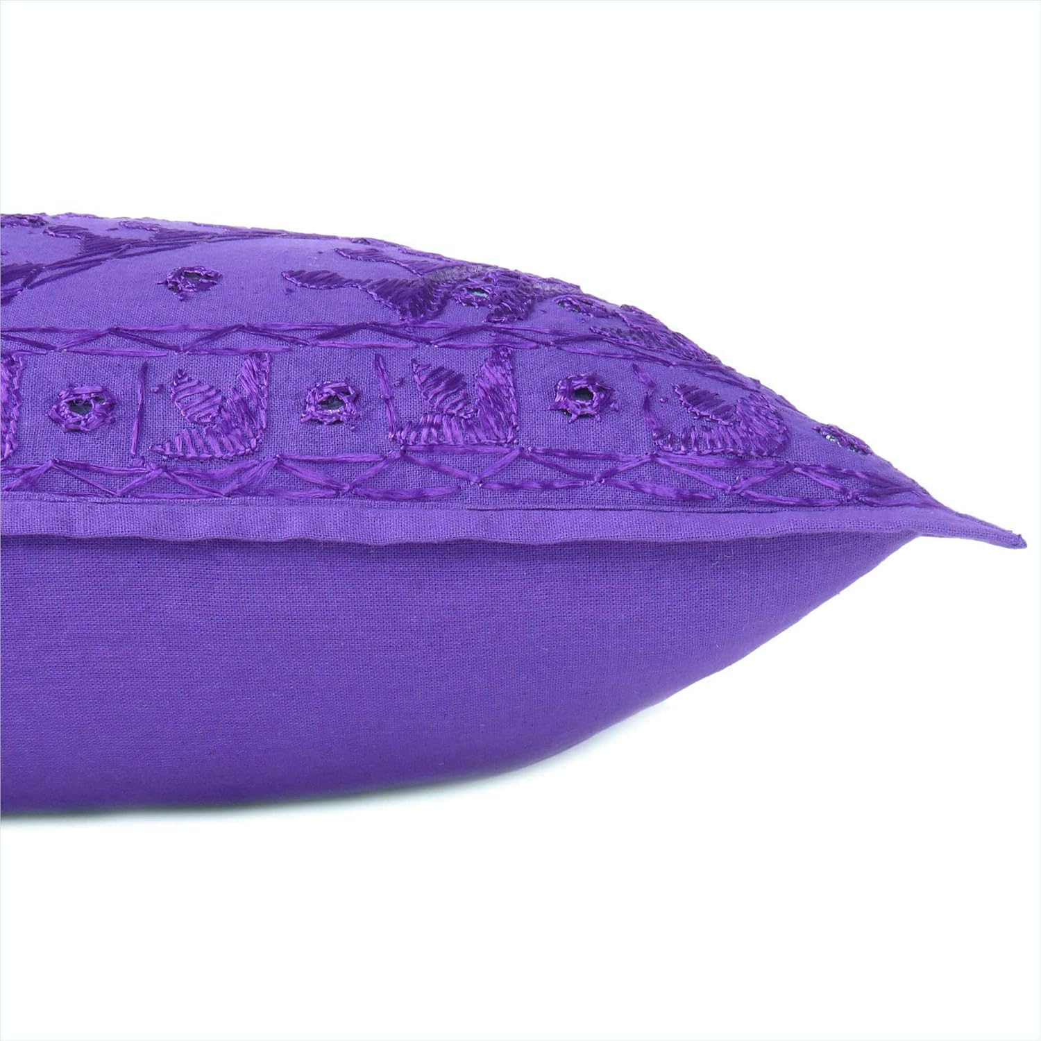 Eyes of India Embroidered Decorative Boho Throw Pillow Cover with Mirrors, Handmade Bohemian Accent Cushion Case for Sofa Couch Bedroom Living Room (Purple, 24" x 24")