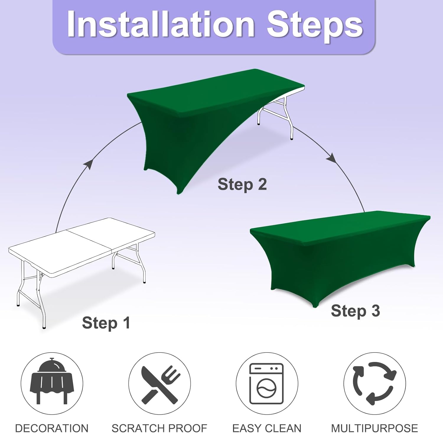 - 2.Why This Cover?: This table cover made from 90% high-quality polyester and 10% spandex material. So that it is Durable, Long-Lasting, Wrinkle-Resistant. The strong elastic hem ensures a tight grip on your table, preventing slipping or sliding, even during active use. Itâs built to last through many times washes and uses. Whether itâs a family dinner, wedding, birthday party, holiday celebration, or outdoor picnic, this tablecloth adds a touch of elegance to any setting.