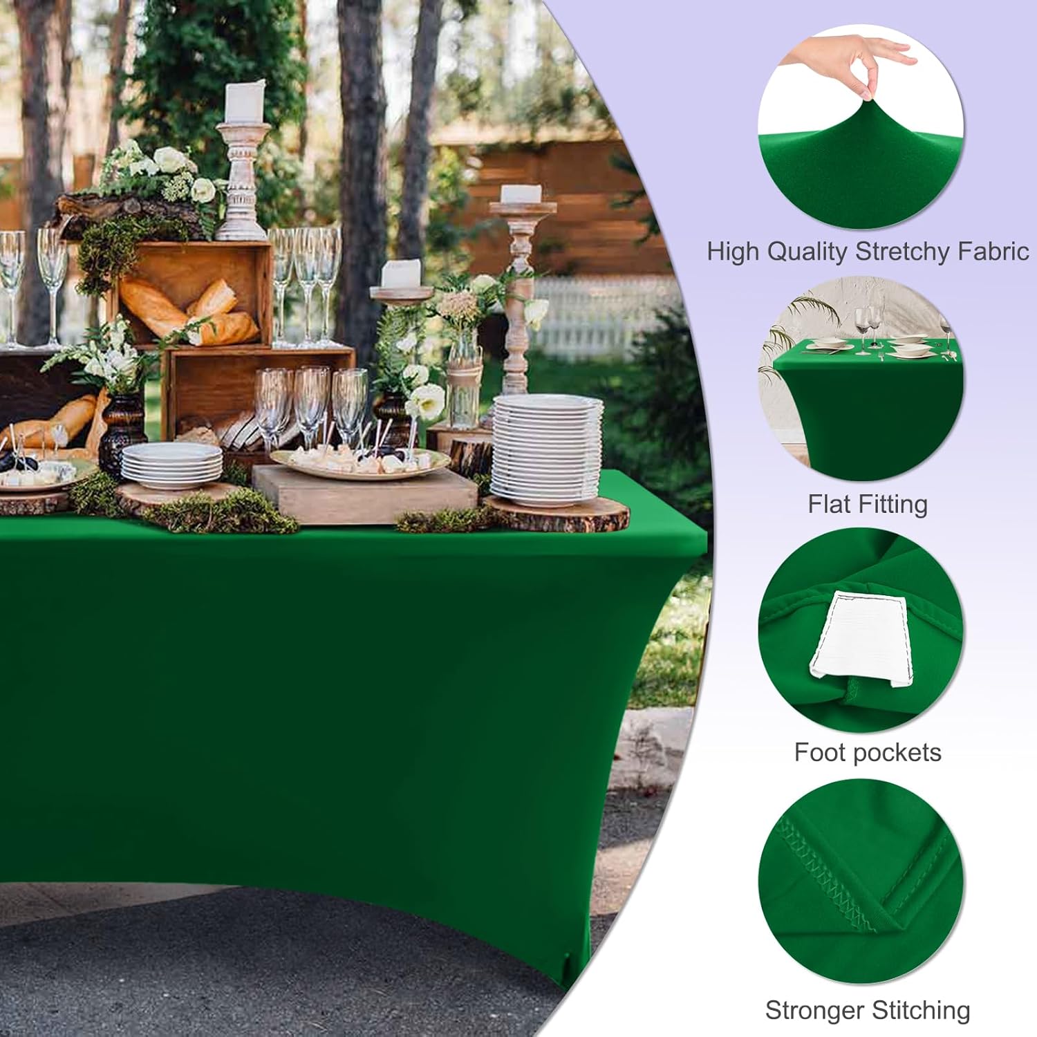 ABCCANOPY 6 FT Forest Green Spandex Table Cover Stretch Fitted Wrinkle Resistant Tablecloth Reuse for Rectangular Folding Table Patry Event Wedding Banquet Protector
