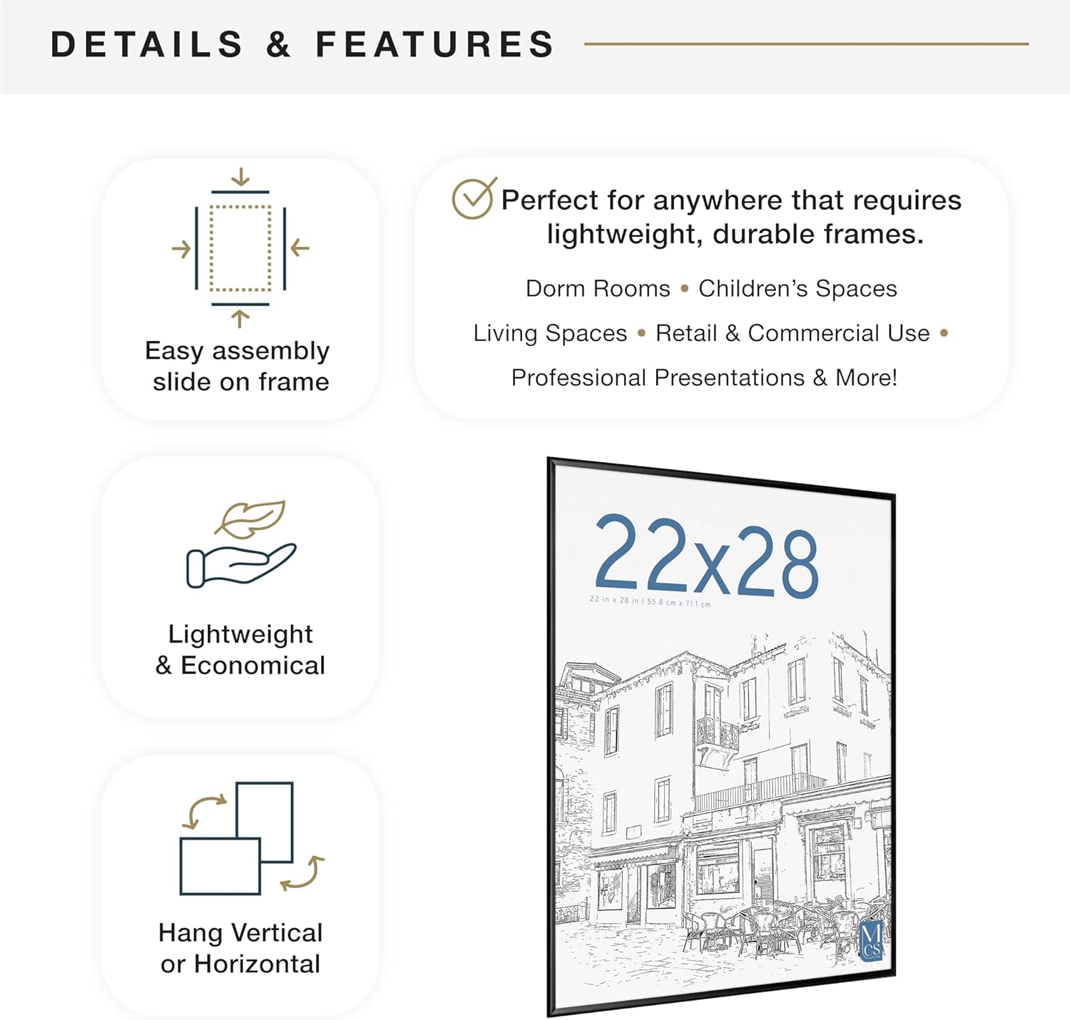 - EASY SELF ASSEMBLY: With a quick and easy snap-in-place frame assembly and pre-installed hinged hanging hardware, decorating your space has never been so hassle-free; Frame can be displayed vertically or horizontally for maximum versatility