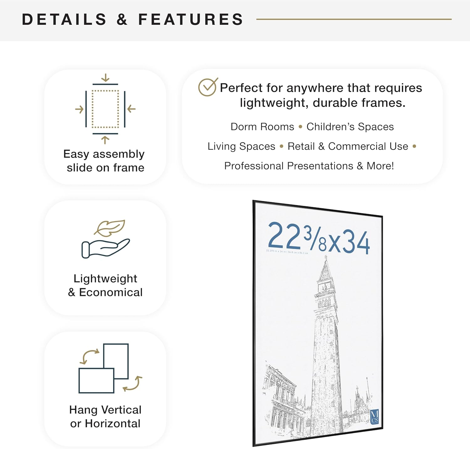 MCS Original Poster Frame 22.375x34 Black Lightweight Vertical & Horizontal Wall Hanging Large Picture Frame for Posters, Art Prints & Gallery Wall (1-Pack)