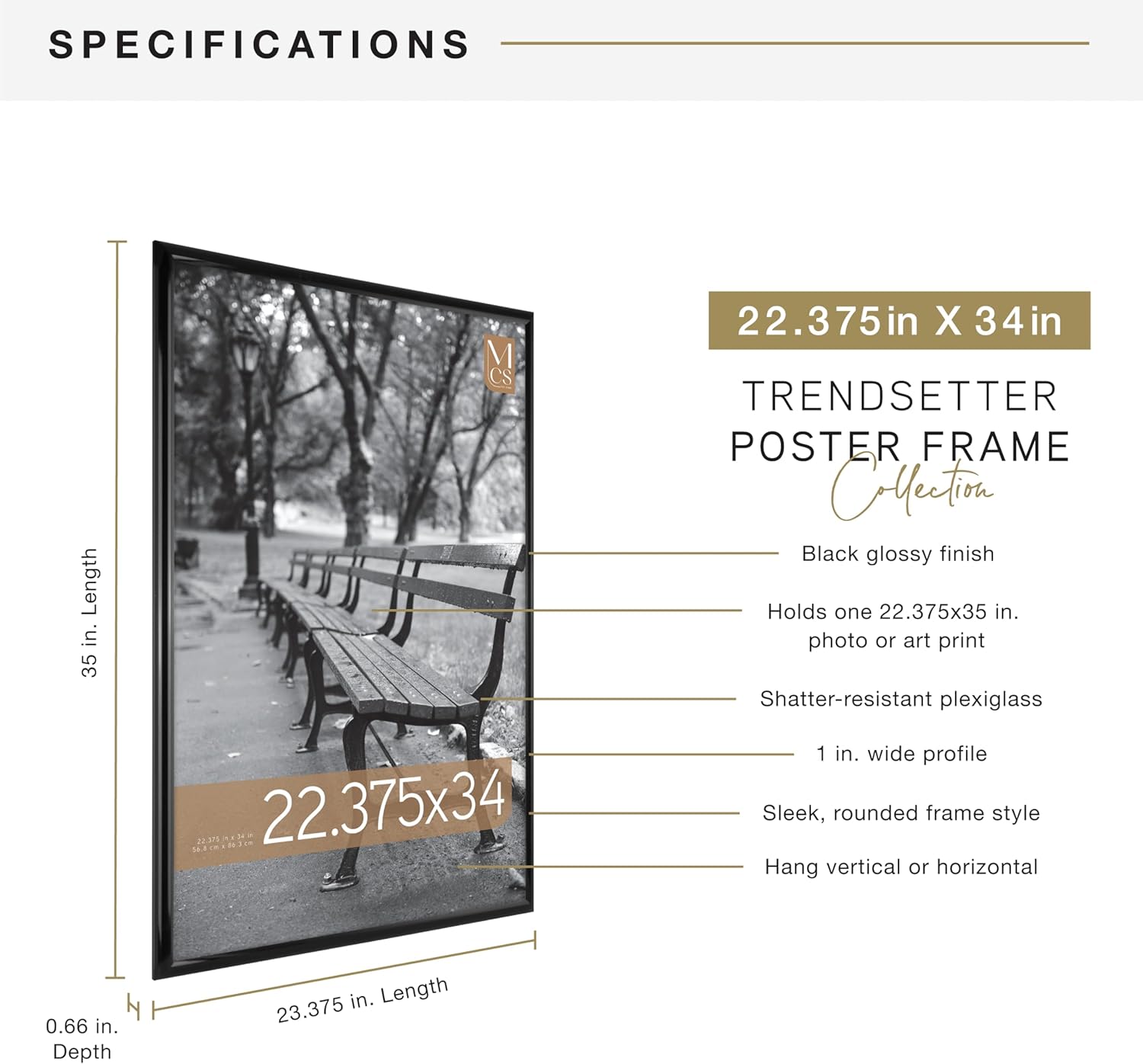- VERSATILE DECOR: With a passion for design, trend, and functionality, MCS delivers best-in-class products, like our modern picture frames, that help make your house a home; Showcase posters, photographs, or puzzles with the MCS Trendsetter Frame collection; With multiple sizes and finishes to choose from, you can outfit your living room, bedroom, or home office with sleek, contemporary wall decor