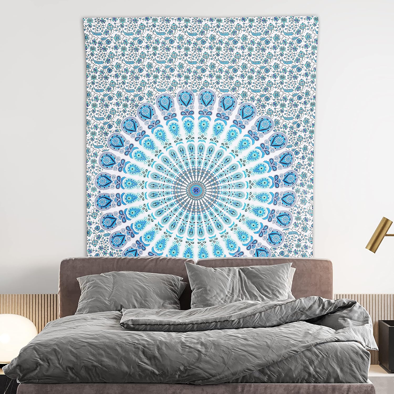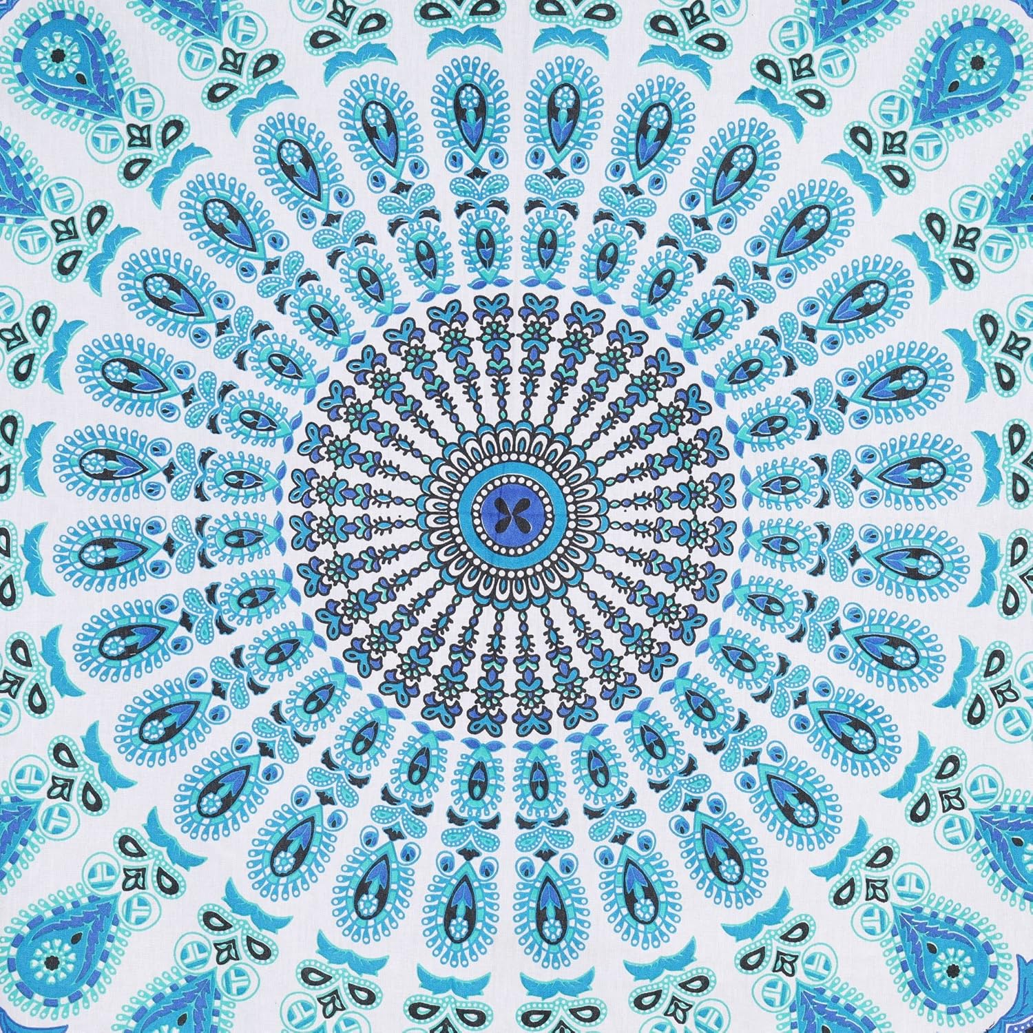 Bless International Handmade Indian hippie Bohemian Psychedelic Peacock Mandala Wall hanging College Dorm Beach Throws Table Cloth Bedding Tapestry (Peacock Sky Blue, Twin(54x72Inches)(140x185cms))