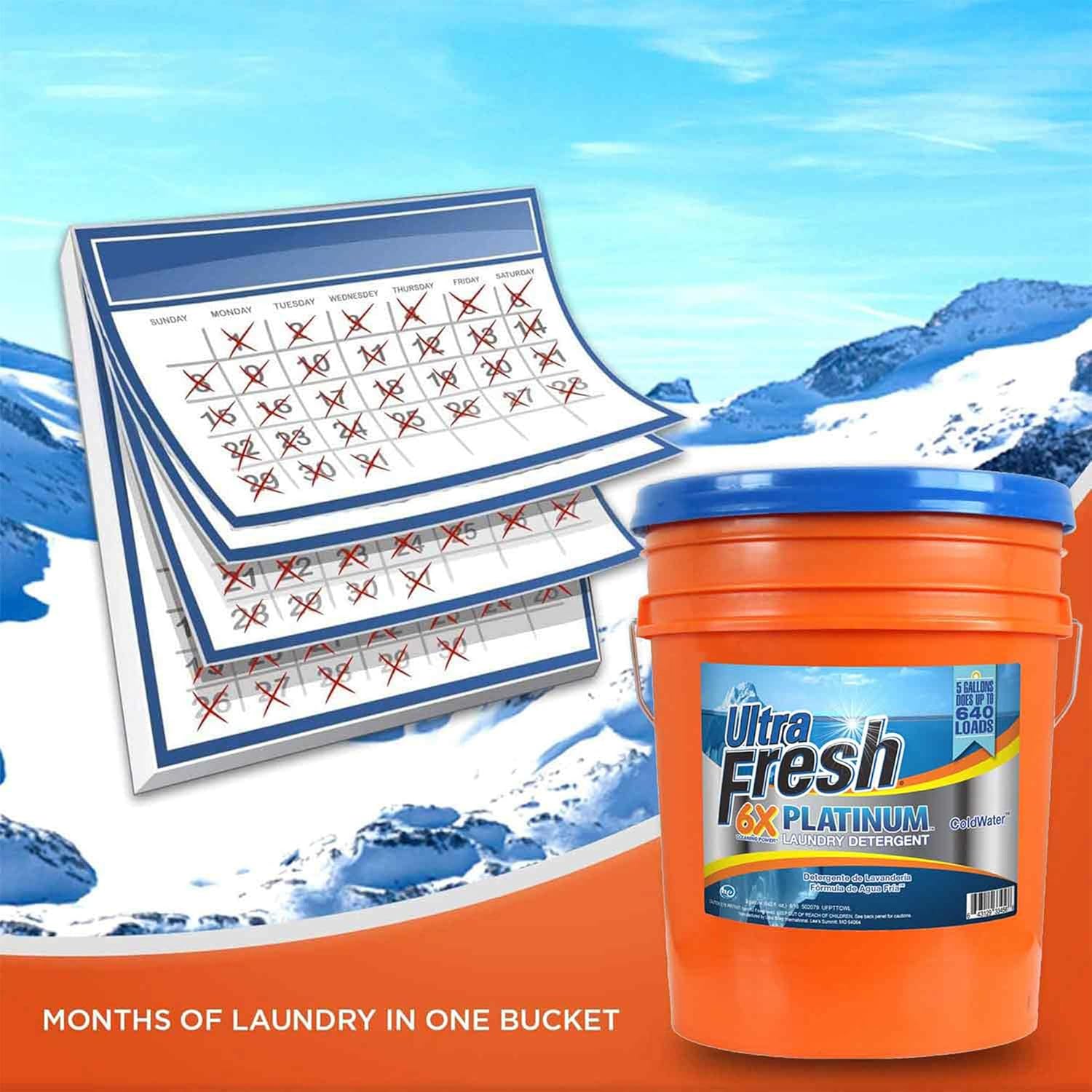 Ultra Fresh Liquid Laundry Detergent Washing Soap, 6X Platinum, ColdWater, 5 Gallon – Fabric Odor Remover to Wash Clothes and Sheets