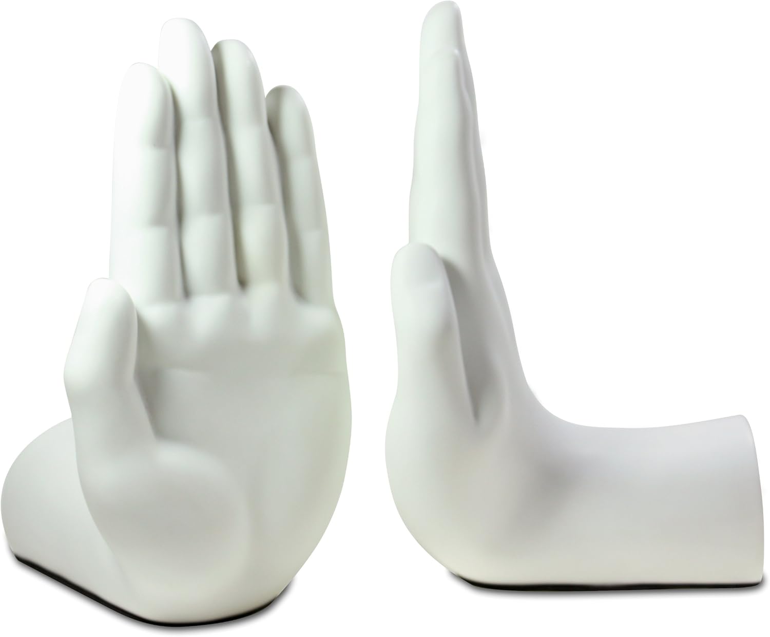 Danya B. Contemporary Accent Book Shelf Decor - Hands Sculpture Bookend Set of 2 (White)