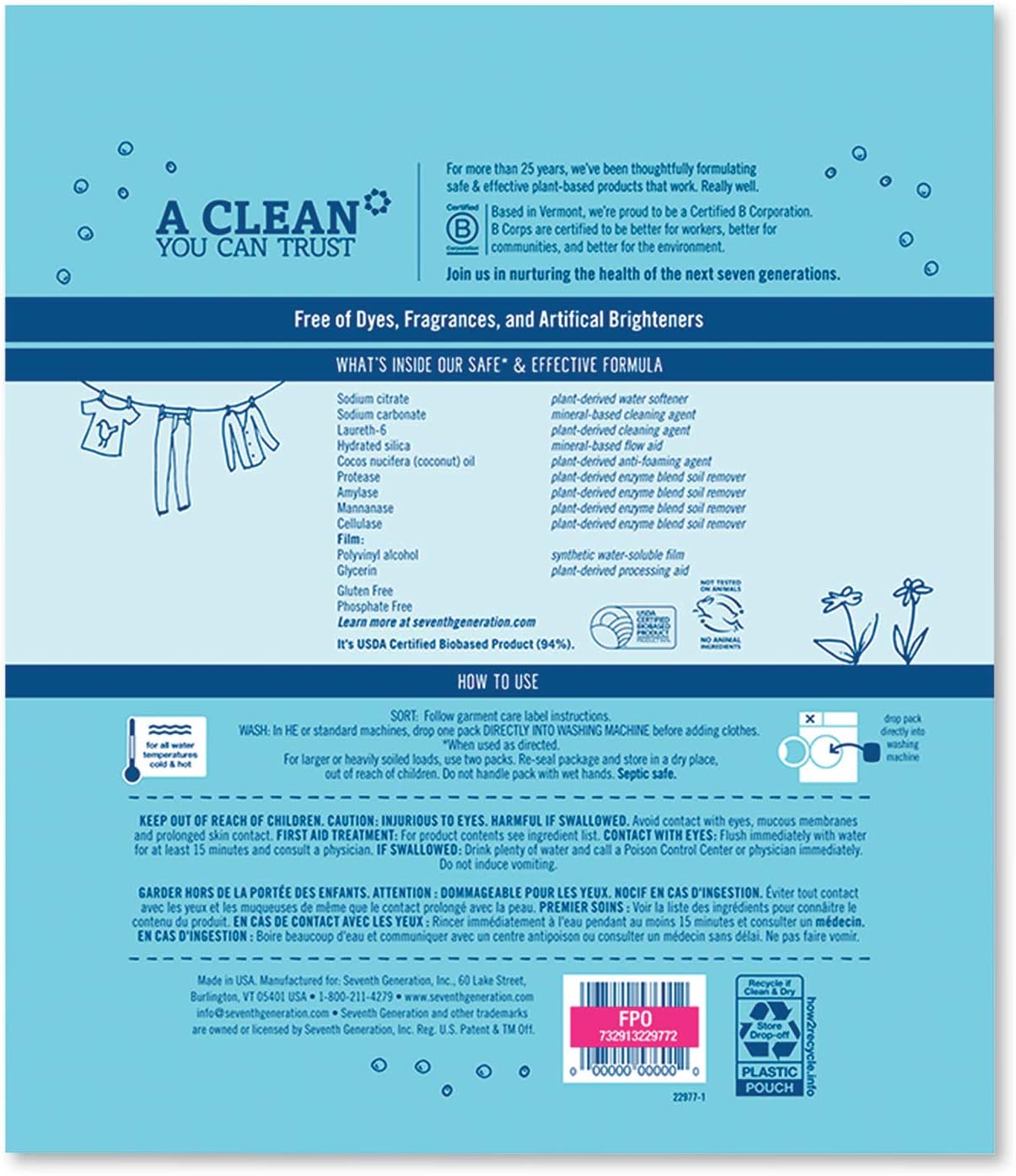 Natural Laundry Detergent Packs, Powder, Unscented, 45 Packets/Pack, 8/Carton