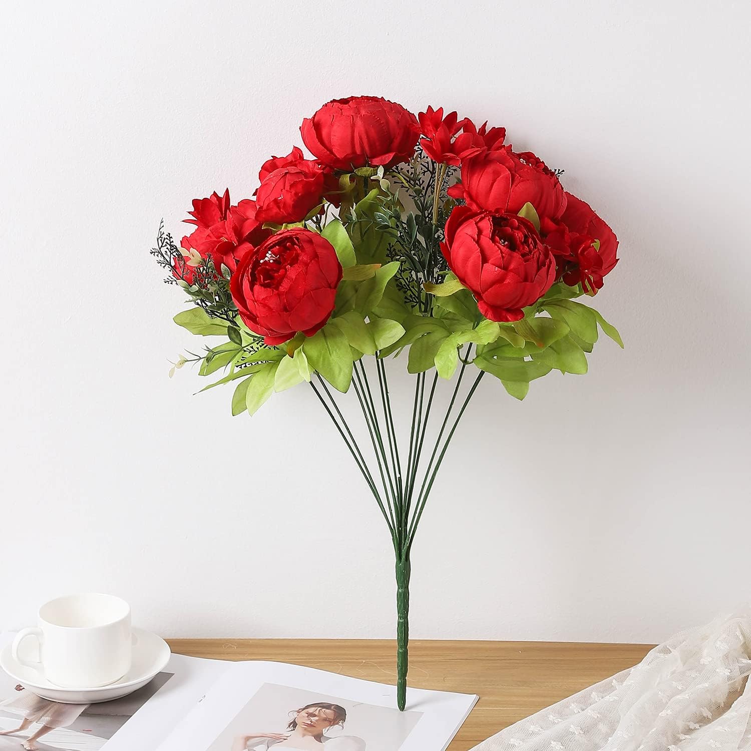 Duovlo Springs Flowers Artificial Silk Peony Bouquets Wedding Home Decoration,Pack of 1 (Spring Red)