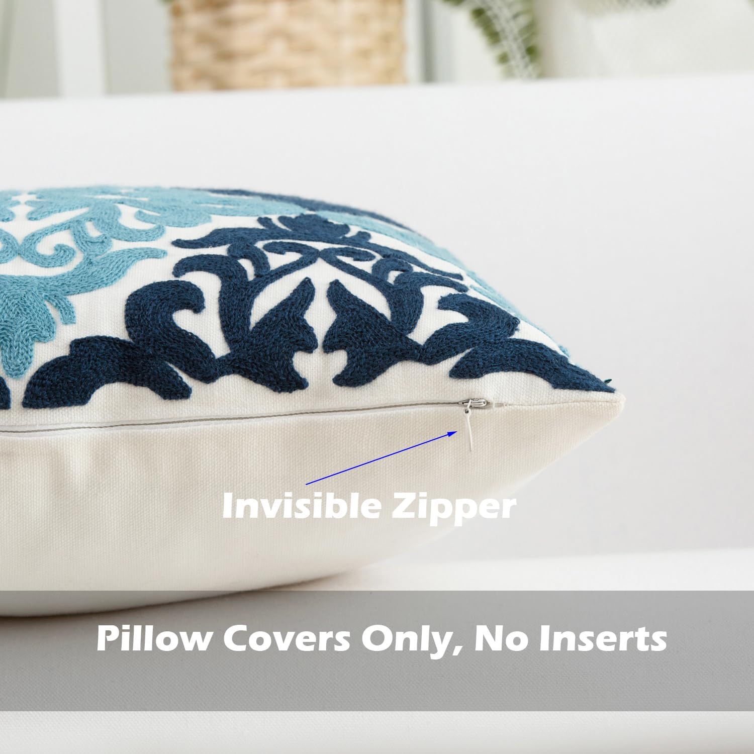 - Size & Material: This 18 x 18 inch (18 by 18) square throw pillow cover is made of 100% thick cotton canvas for durability. The crisp white fabric is soft yet sturdy, featuring beautiful single-sided embroidery for an elegant touch