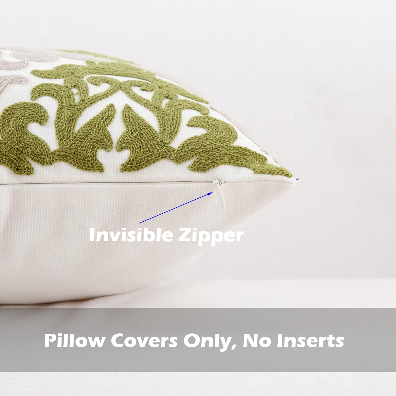 HWY 50 Green Decorative Throw Pillow Covers 18x18 Inch (1 Piece), Embroidered Cotton Farmhouse Cushion Cover Pillow Case for Sofa Couch Living Room Bed Bedroon, Floral Geometric