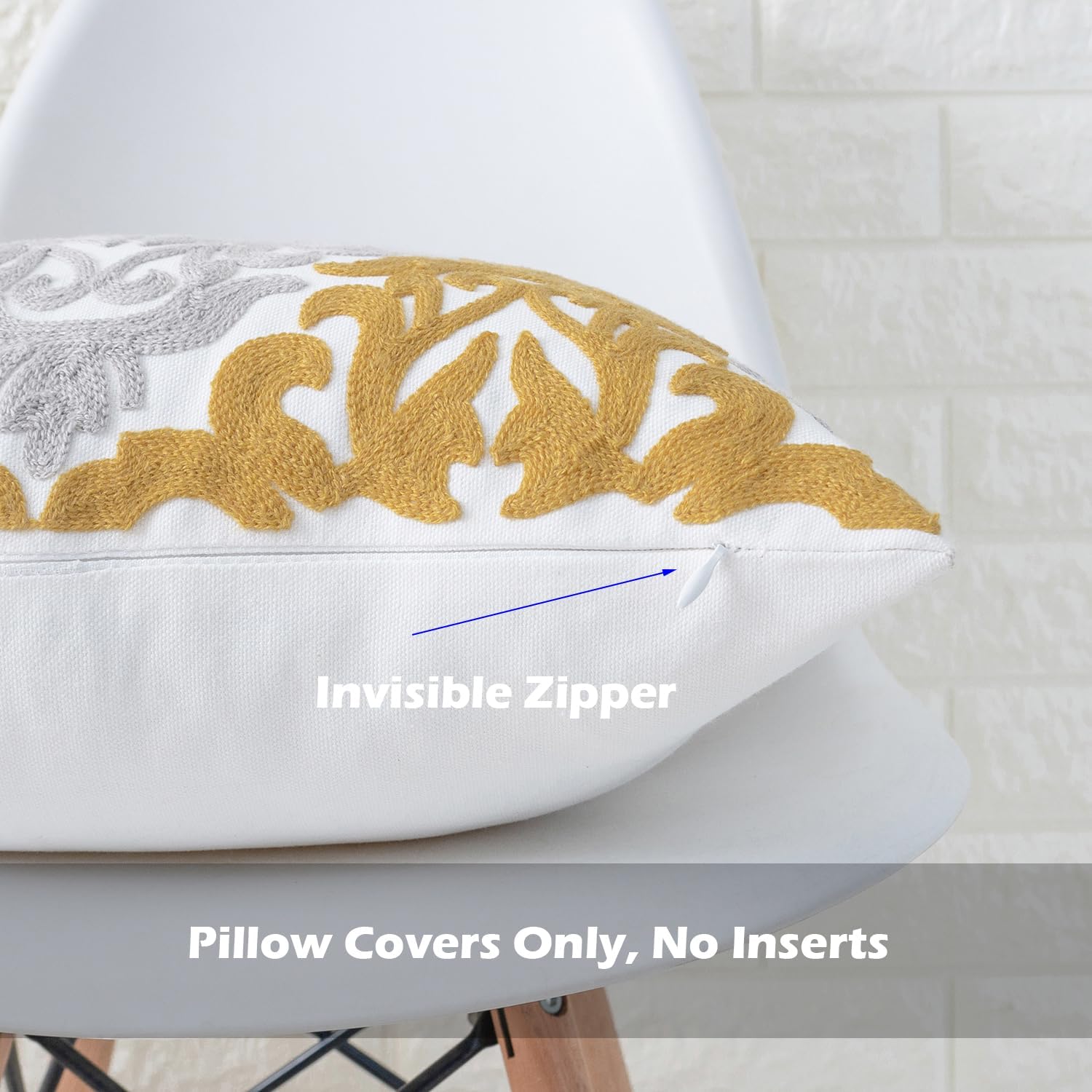 - Size & Material: This 18 x 18 inch (18 by 18) square throw pillow cover is made of 100% thick cotton canvas for durability. The crisp white fabric is soft yet sturdy, featuring beautiful single-sided embroidery for an elegant touch