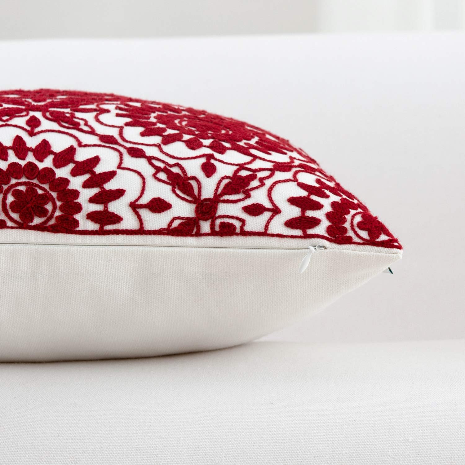 - Size & Material: This 18 x 18 inch (18 by 18) square throw pillow cover is made of 100% thick cotton canvas for durability. The crisp white fabric is soft yet sturdy, featuring beautiful single-sided embroidery for an elegant touch
