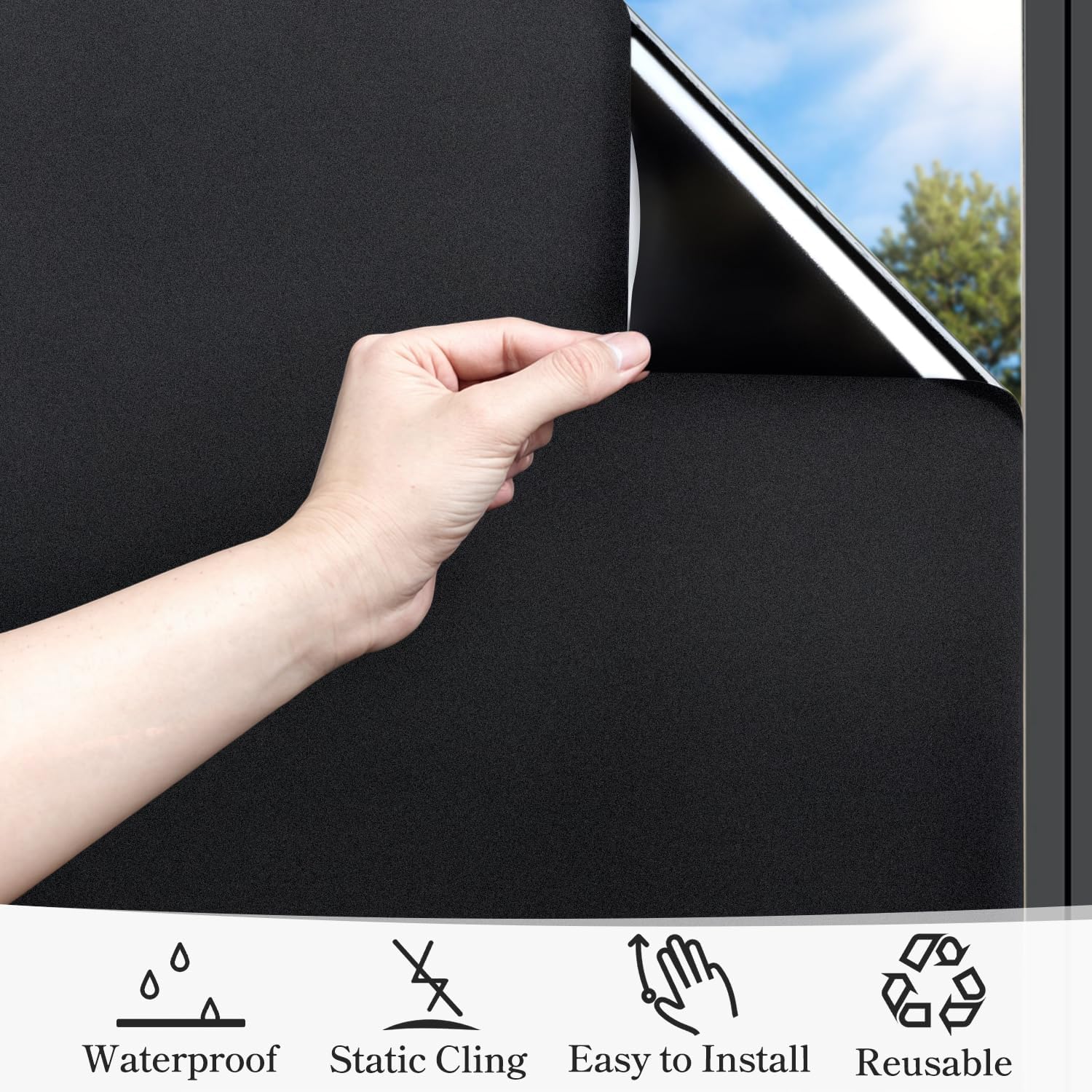 DUOFIRE Blackout Window Film Completely Light Blocking Privacy Window Film Room Darkening Frosted Tint Films for Day Sleep, Non Adhesive Static Cling Films DT-C009 (23.6 x 157.5 Inch)