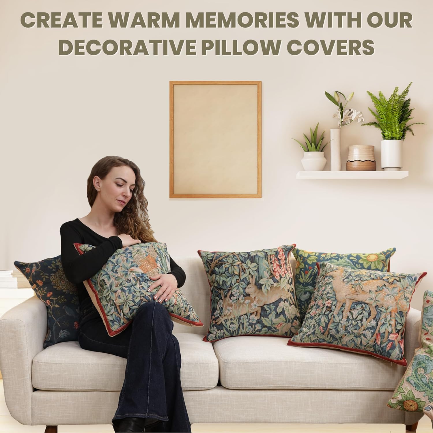 - Timeless Durability: Elevate your decor with our skin-friendly William Morris pillow covers 14”X14”, where quality and style come together. A sturdy hidden zipper ensures easy pillow insertion/removal, while the overlock stitches prevent seam ripping. Unlike thin printed cushion covers prone to tearing, our decorative pillows for couch with a super-soft backside are crafted with thick premium threads for long-lasting quality. THE PACKAGE INCLUDES A SINGLE TAPESTRY PILLOW COVER WITHOUT AN INSERT