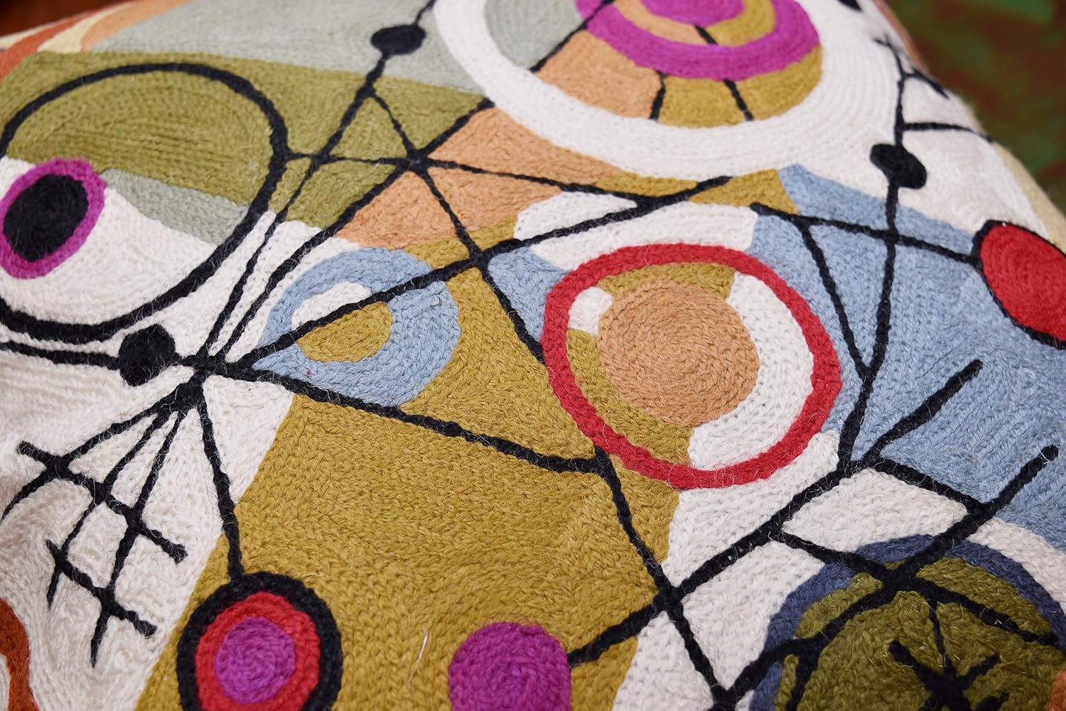 Kandinsky Abstract Throw Pillow Cover - Circles | Modern Couch & Outdoor Pillow | Mid Century Chair Cushions | Handmade Wool Size 18x18