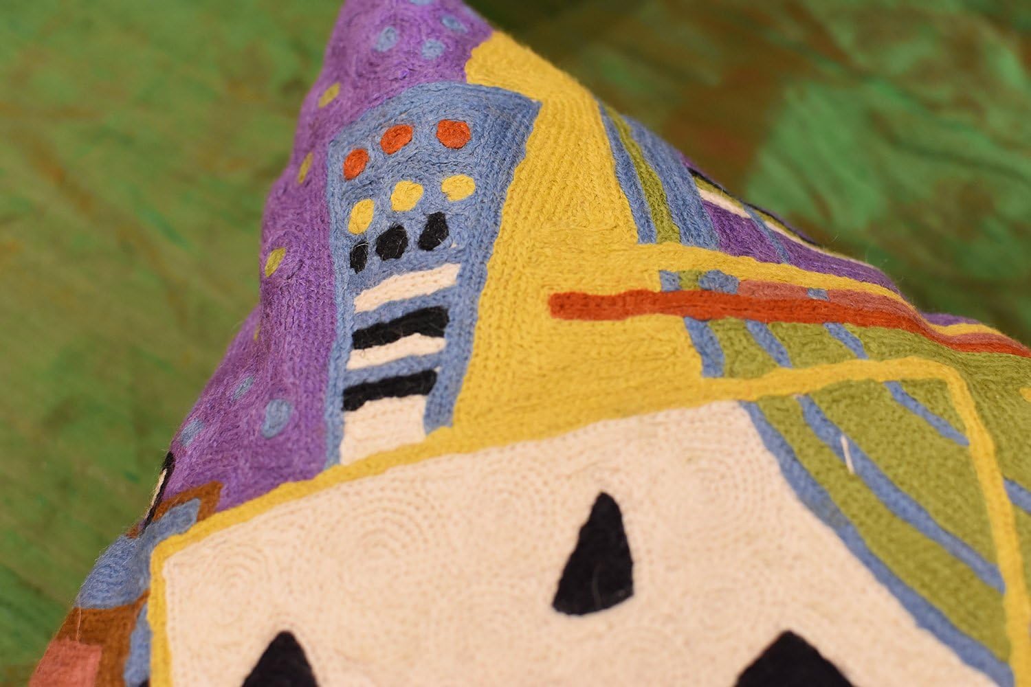 - π MODERN THROW PILLOW COVER - HAND EMBROIDERED: These colorful decorative modern throw pillow covers are inspired by the art of Kandinsky and are hand embroidered in soft wool to perfection, stitch by stitch, by the finest artisans, creating an extraordinary all modern abstract pillow for your home decor. A close-up view of this all modern accent pillow cover allows you to see the amazing fine chain-stitch hand embroidery. A perfect modern sofa pillow for your contemporary couch.