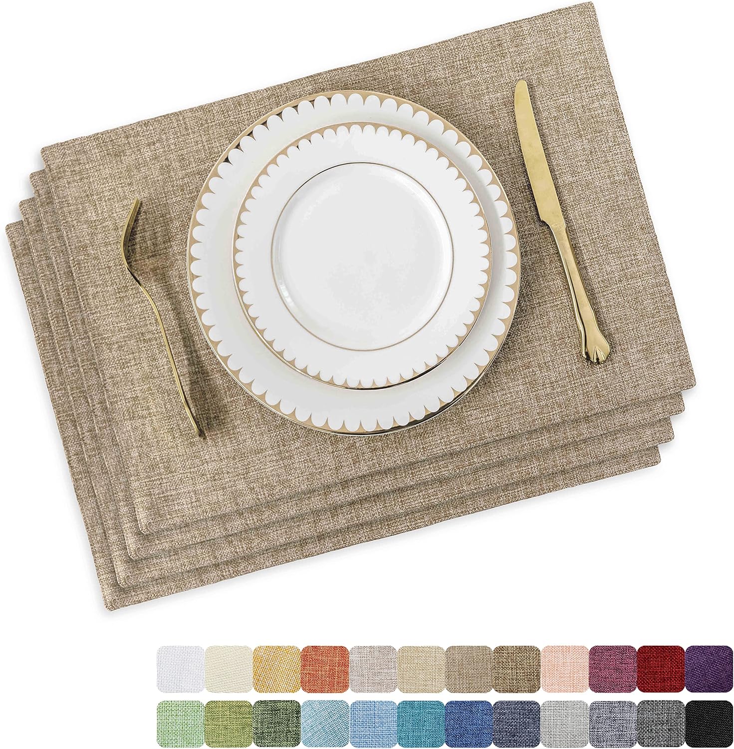 Home Brilliant Linen Placemats Set of 4 Heat Resistant Dining Table Cloth Place Mats Kitchen Table Mats Placemats Table Spring Decor, Natural Linen