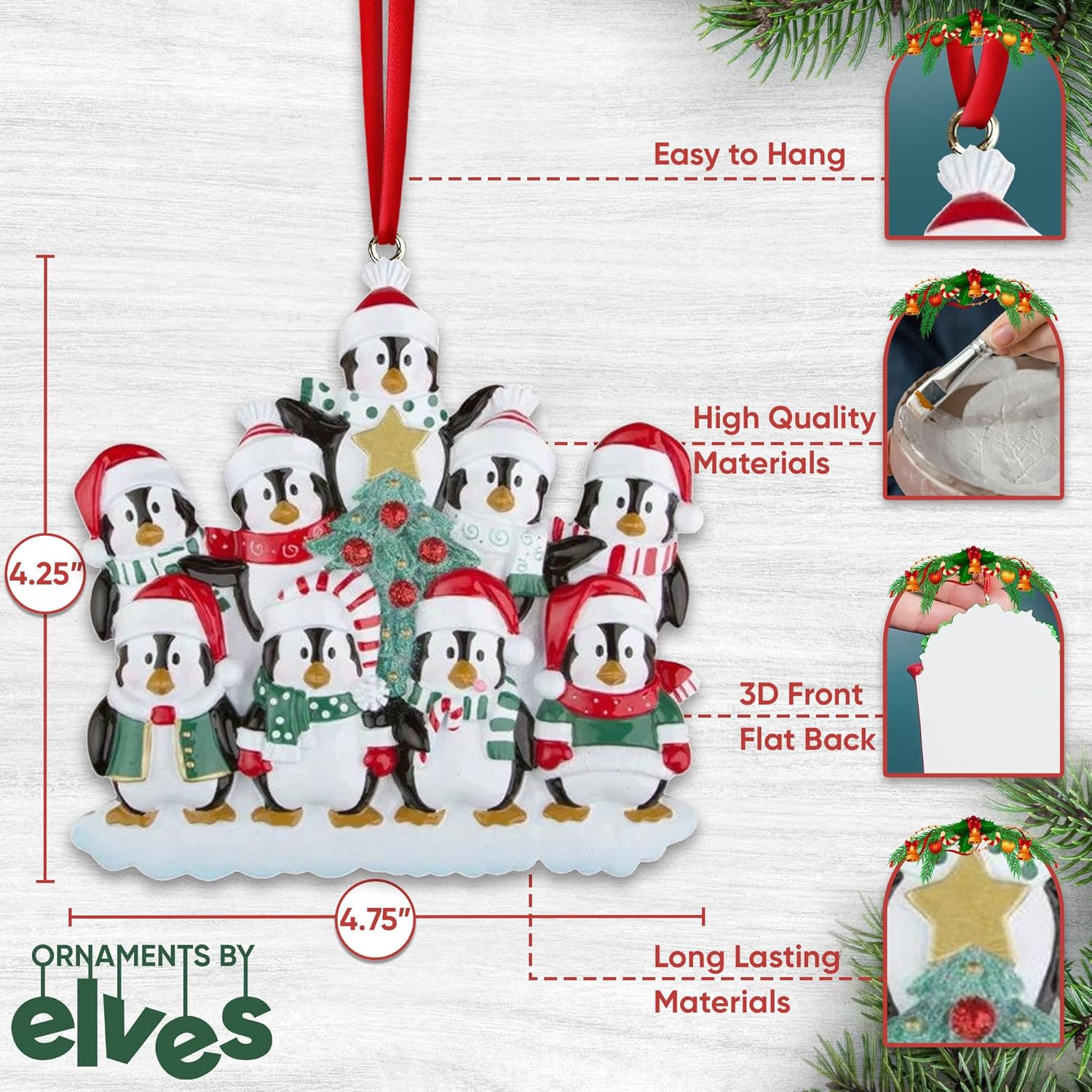 - 🎁 Celebrate Sibling or Grandkid Love Mark a heartfelt milestone with a personalized family Christmas ornament 2025—perfect for nine, ten, eleven, or twelve siblings or a set of cherished grandchildren. This penguin family Christmas ornament showcases a group of eight festive penguins in matching Santa hats on penguins and red and green holiday scarves, circling a glittery Christmas tree centerpiece. Whether it’s part of a beloved tradition or a meaningful one-time gift, this keepsake captures the joy of big-family bonds and legacy.