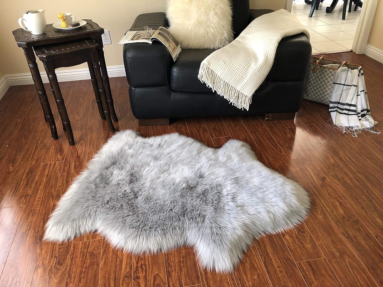 - SKIN FRIENDLY JAPANESE ACRYLIC YARN SHEEPSKIN FAUX: Give your home a touch of luxury with the sheepskin fur rug. Luxurious comfort with this ECO-friendly silky shag rug, faux sheepskin rug adds softness and warmth to your room. Looks and feels like real sheepskin, soft, plush, and silky multipurpose rug.
