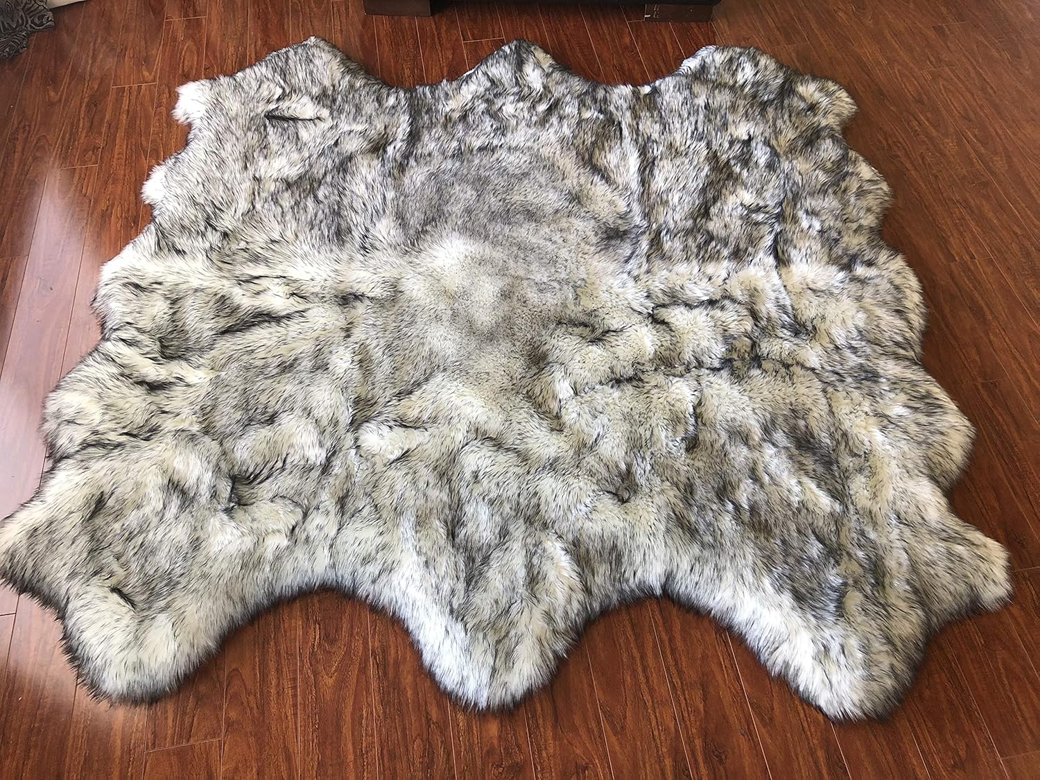 LAMBZY Faux Sheepskin Hypoallergenic Free Shape Silky Shag Rug, Luxury Shaggy Carpet for Bedrooms Rugs Living Kids Rooms Floor Rugs (Sexto 6 Pelts 6'x6', 180x180 cm, White/Black Tips)