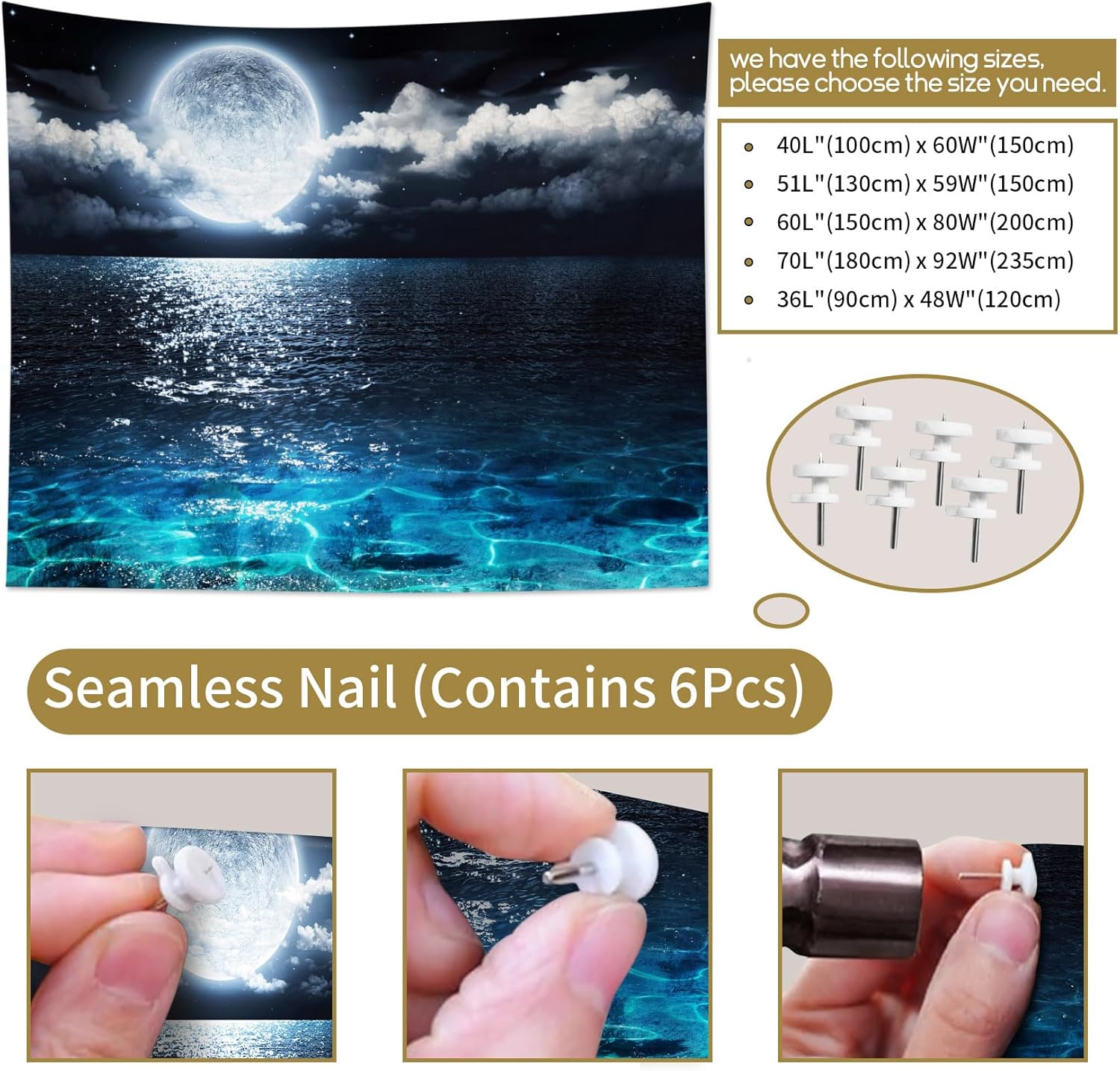LB Moon Over Ocean Tapestry, Night Sky Tapestry Wall Hanging, 3D Fantasy Psychedelic Watercolor Wall Art for Bedroom Living Room Dorm Home Decor, 60 x 40 Inches