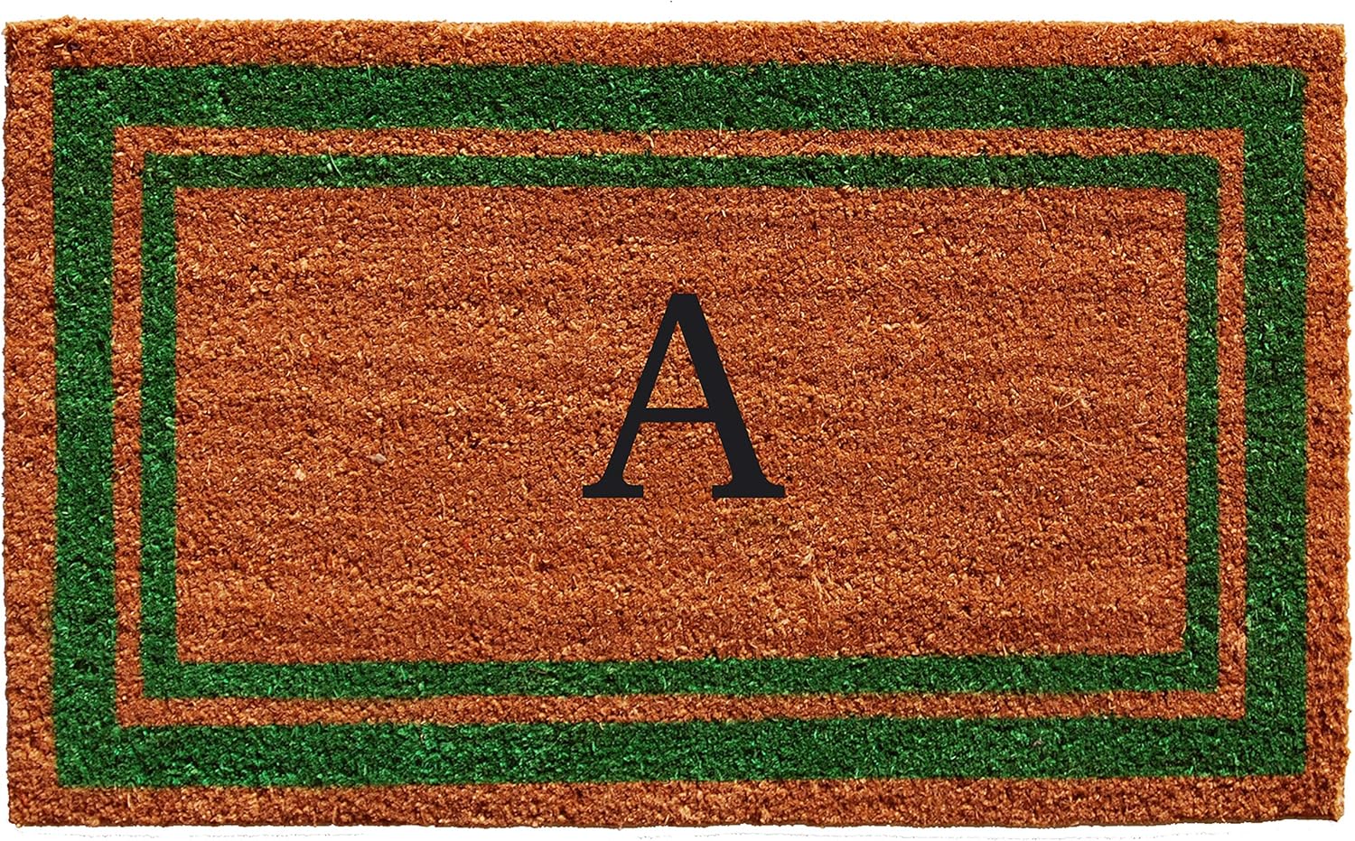 Calloway Mills Green Border 18" x 30" Monogram Doormat, Natural/Green (Letter A)