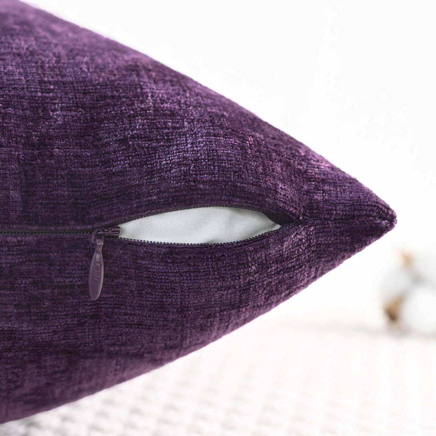 CaliTime Throw Pillow Covers Decorative 16 X 16 Inches Pack of 2 Cozy Chenille Cushion Cases for Couch Sofa Bed Living Room Home Plum Purple
