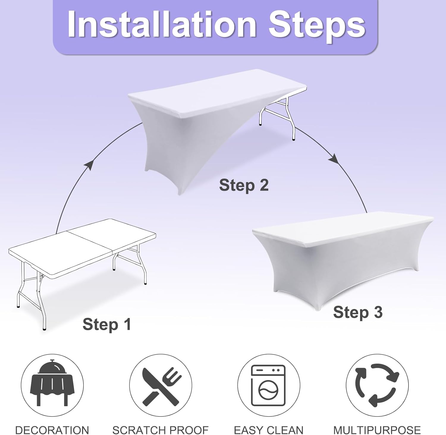 ABCCANOPY 6 FT White Spandex Table Cover Stretch Fitted Wrinkle Resistant Tablecloth Reuse for Rectangular Folding Table Patry Event Wedding Banquet Protector