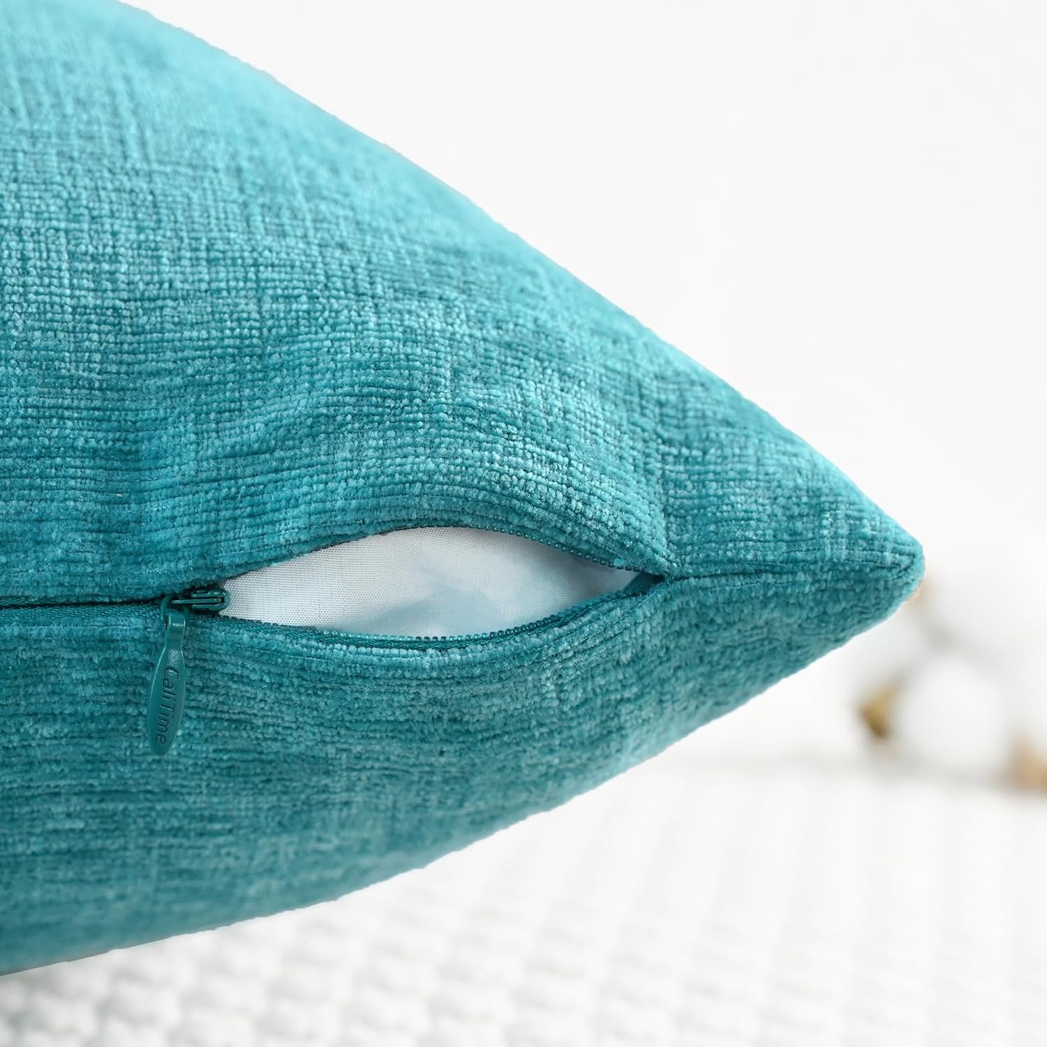 CaliTime Throw Pillow Covers Decorative 12 X 20 Inches Pack of 2 Cozy Chenille Cushion Cases for Couch Sofa Bed Living Room Home Lake Blue