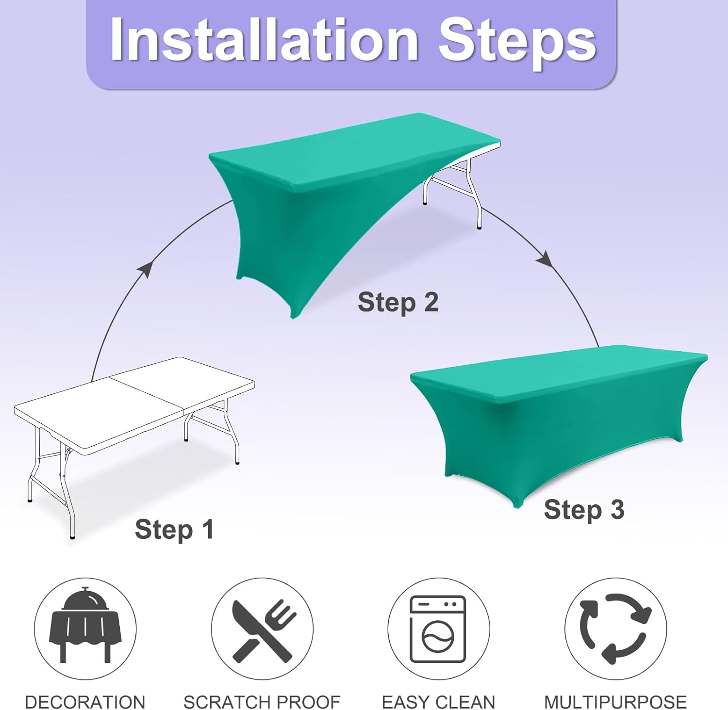 ABCCANOPY 6 FT Spandex Table Cover Stretch Fitted Wrinkle Resistant Tablecloth Reuse for Rectangular Folding Table Patry Event Wedding Banquet Protector Turquoise