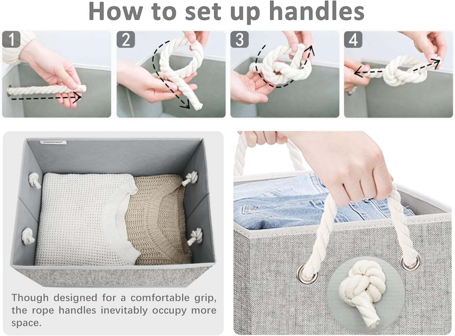 - 2 soft rope handles can support a weight of up to 30 pounds.