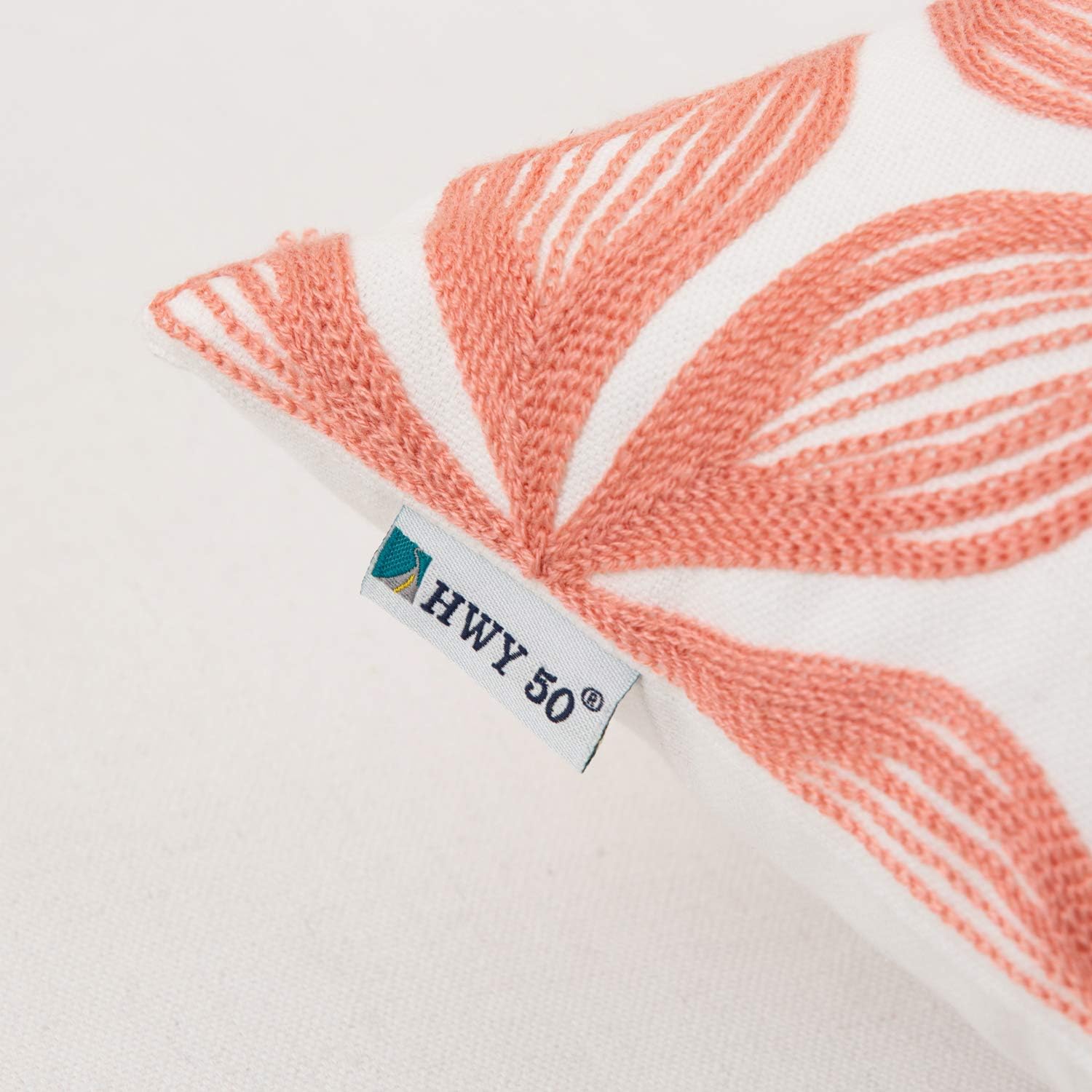 HWY 50 Coral Pink Decorative Throw Pillow Covers 18x18 Inch (1 Piece), Embroidered Cotton Farmhouse Cushion Cover Pillow Case for Sofa Couch Living Room Bed, Fashion Geometric