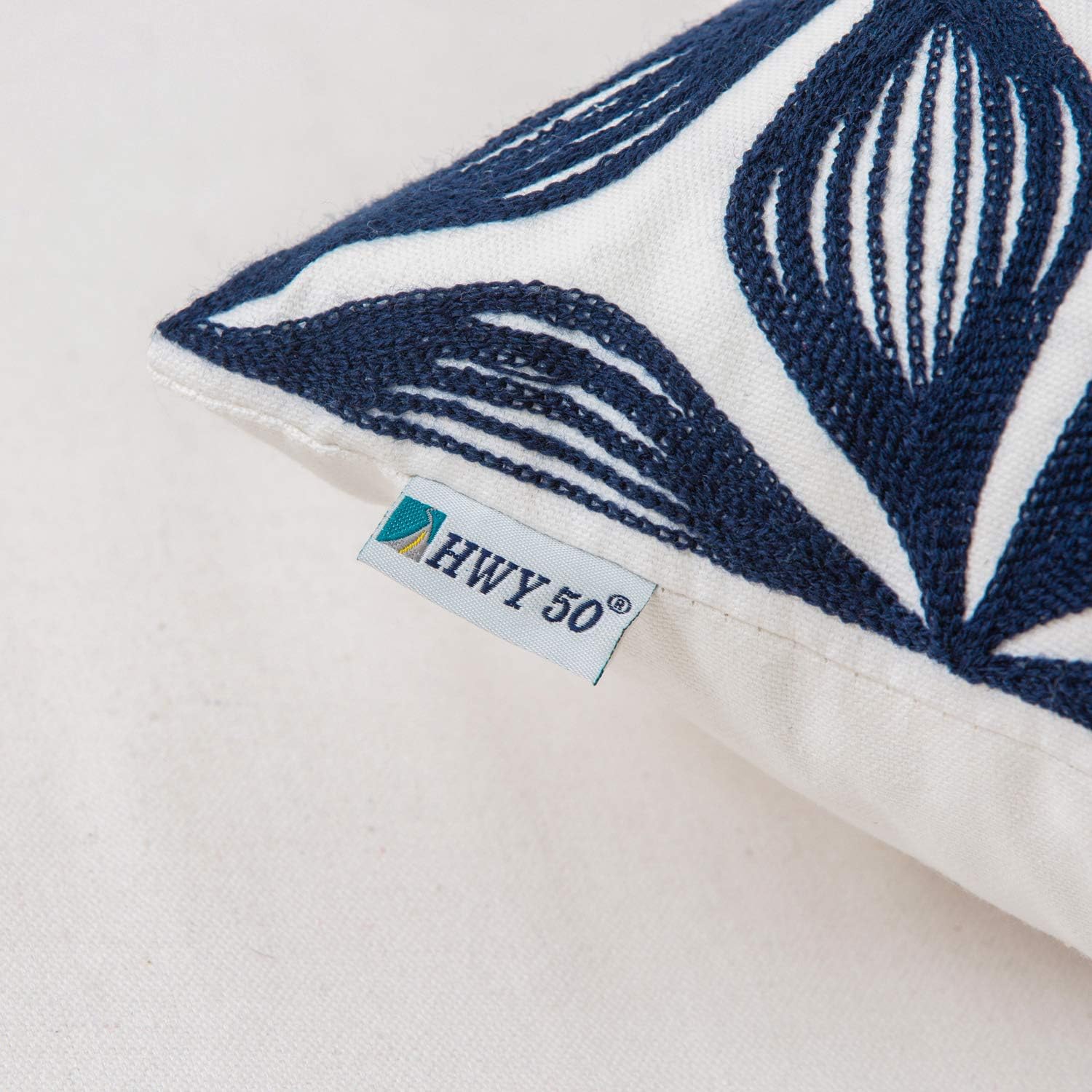 HWY 50 Navy Blue Decorative Throw Pillow Covers 18x18 Inch (1 Piece), Embroidered Cotton Farmhouse Cushion Cover Pillow Case for Sofa Couch Living Room Bed, Fashion Geometric