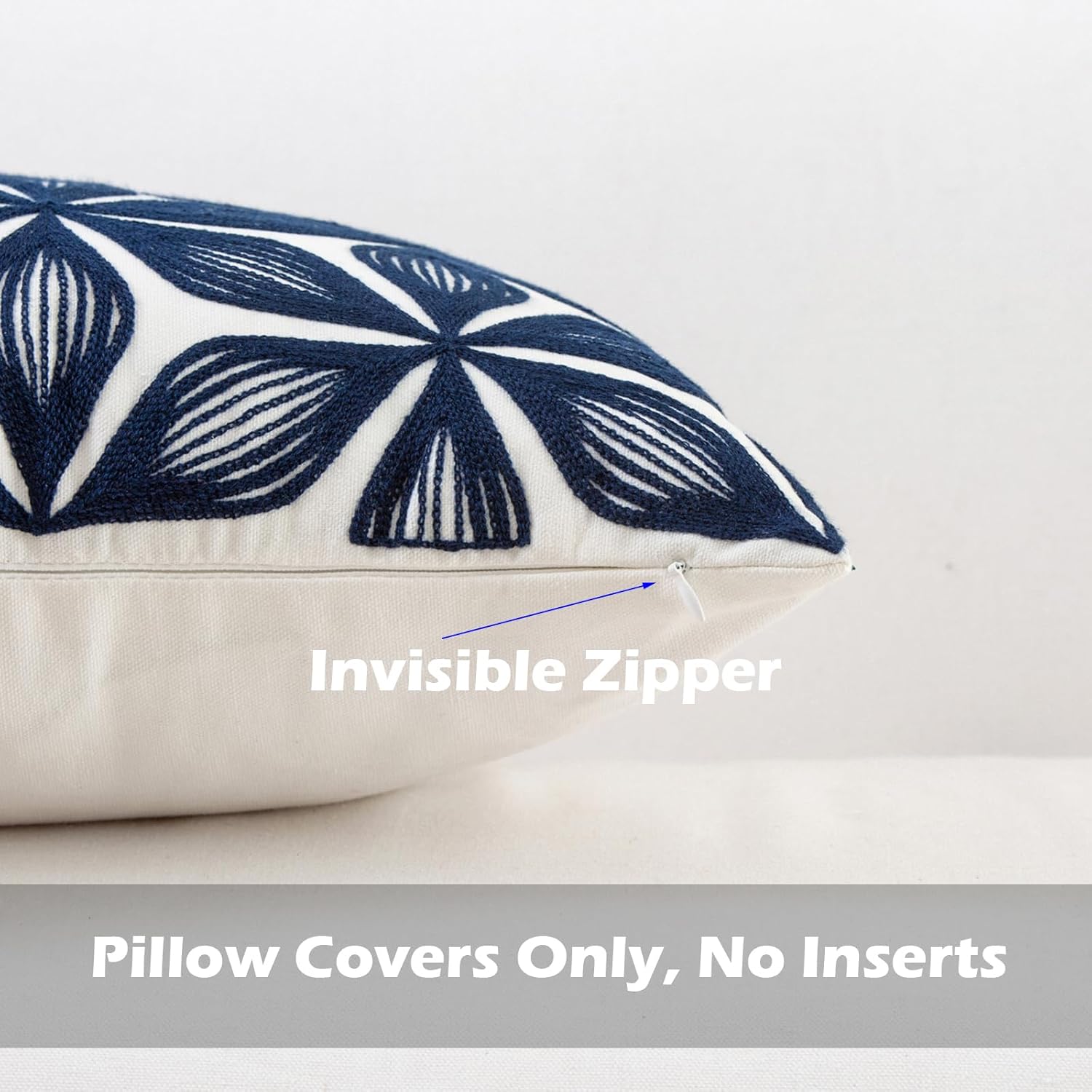 - Size & Material: This 18 x 18 inch (18 by 18) square throw pillow cover is made of 100% thick cotton canvas for durability. The crisp white fabric is soft yet sturdy, featuring beautiful single-sided embroidery for an elegant touch
