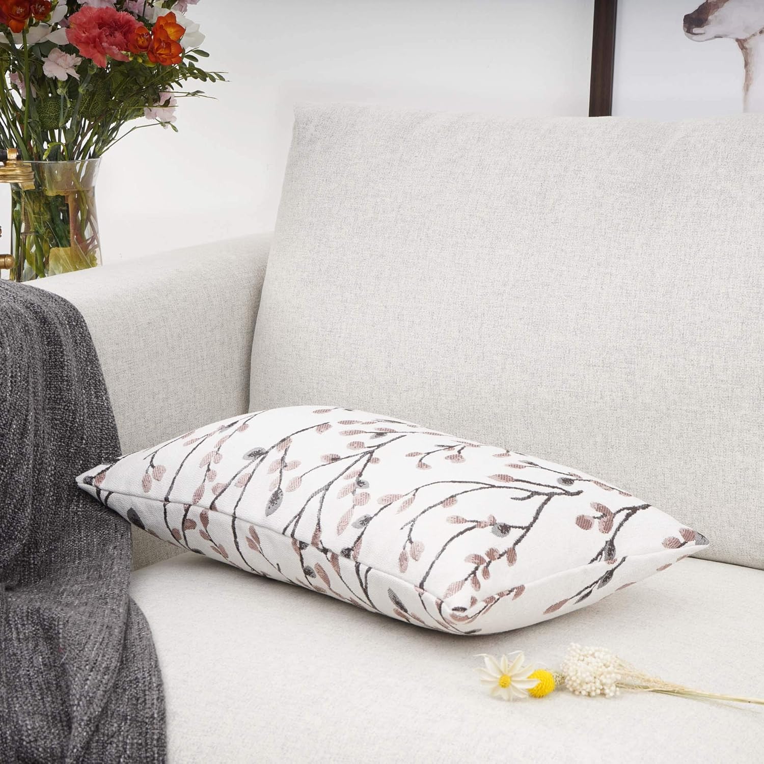 YOUR SMILE Classical Embroidery Jacquard Farmhouse Oblong Rectangle Chenille Red Leaf Decorative Throw Pillow Case,12x20 inch