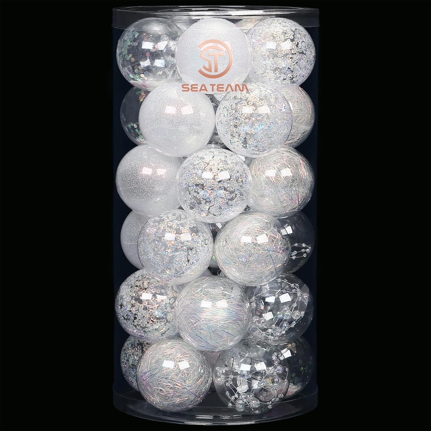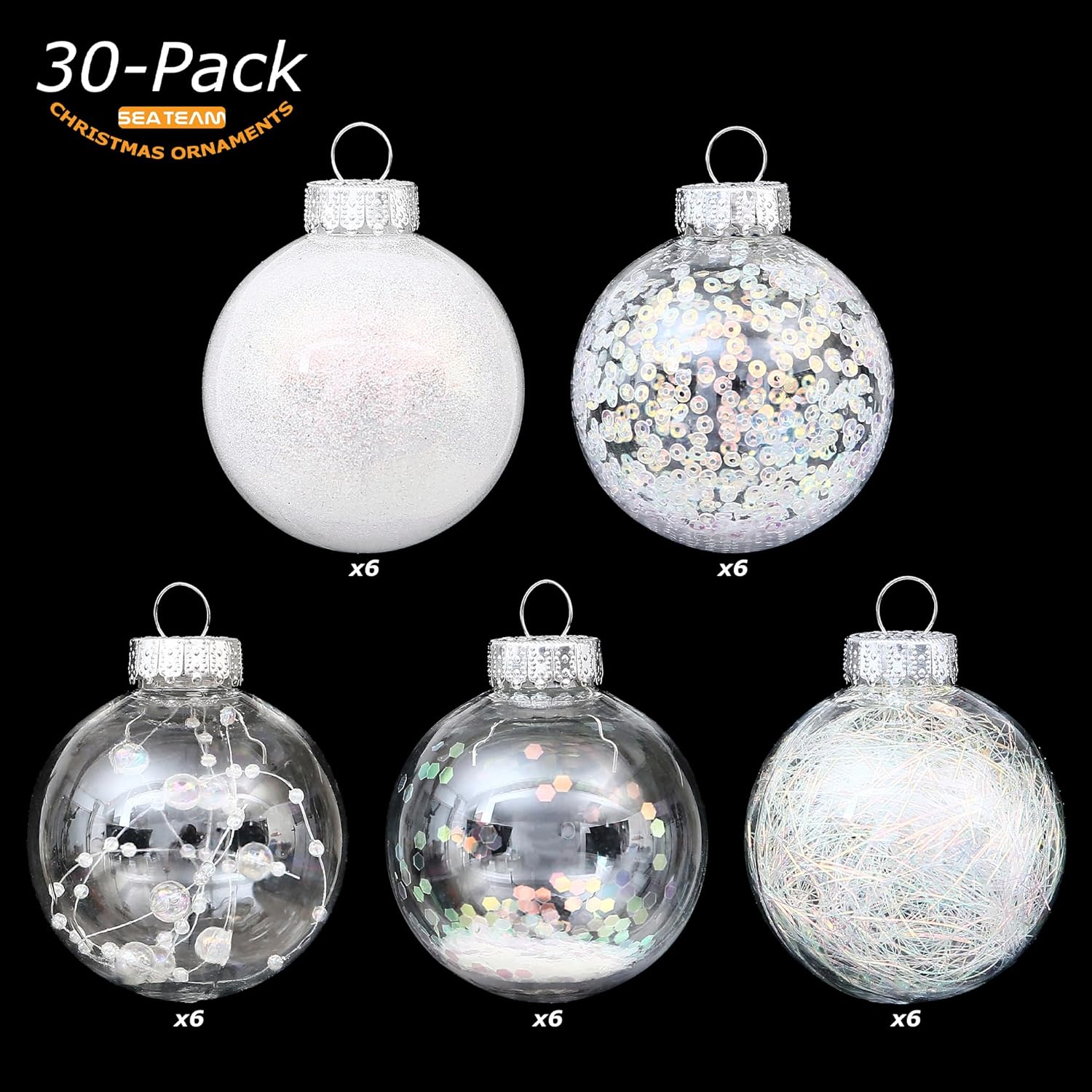 - TRANSPARENT & SPARKLING - These Christmas ball ornaments feature clear glaze base with sparkling decorations like glitter, sequins, tinsel and beads to provide a stunning shimmering look in the light. They will be perfect for decorating your home and become part of your holiday tradition