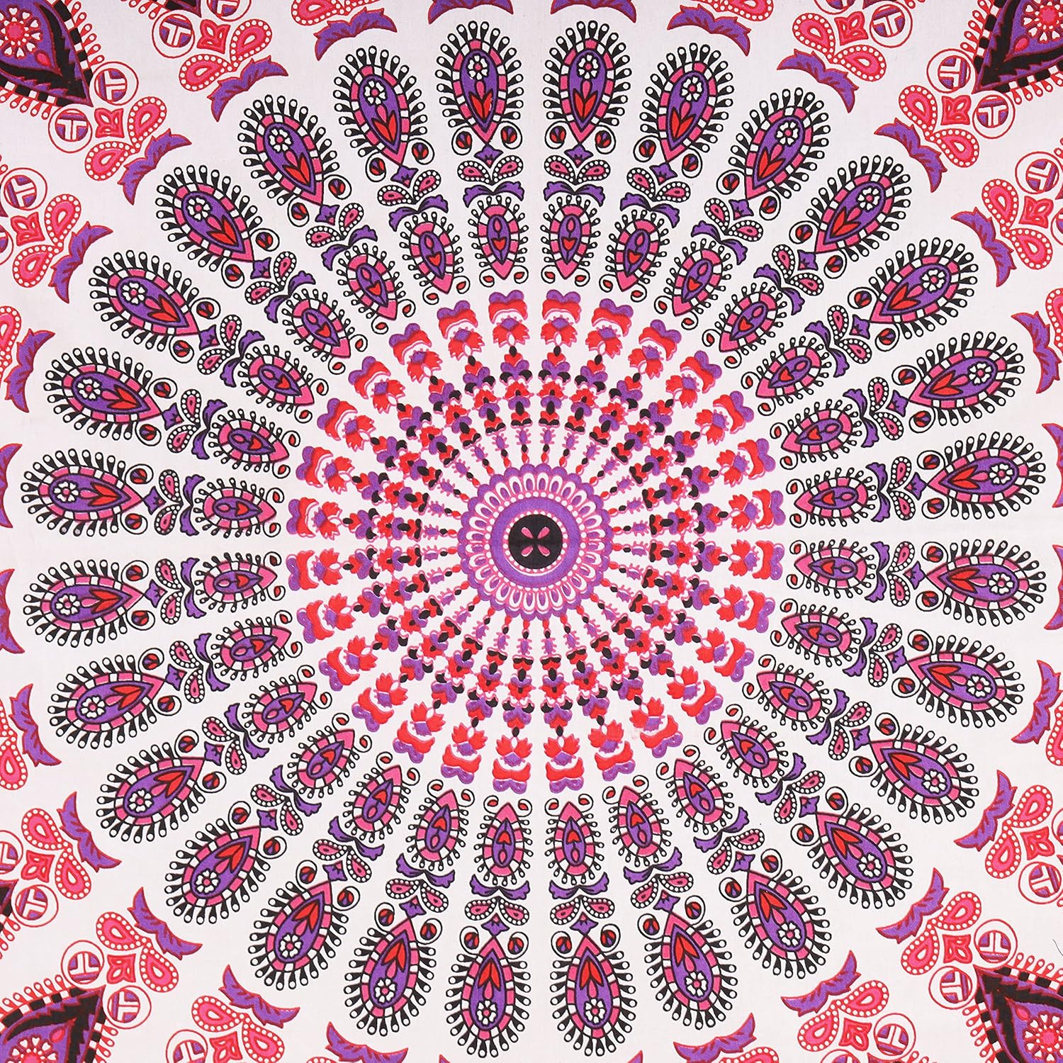 Bless International Handmade Indian hippie Bohemian Psychedelic Peacock Mandala Wall hanging College Dorm Beach Throws Table Cloth Bedding Tapestry (Pink Blue, King(88x104Inches)(225x265Cms))