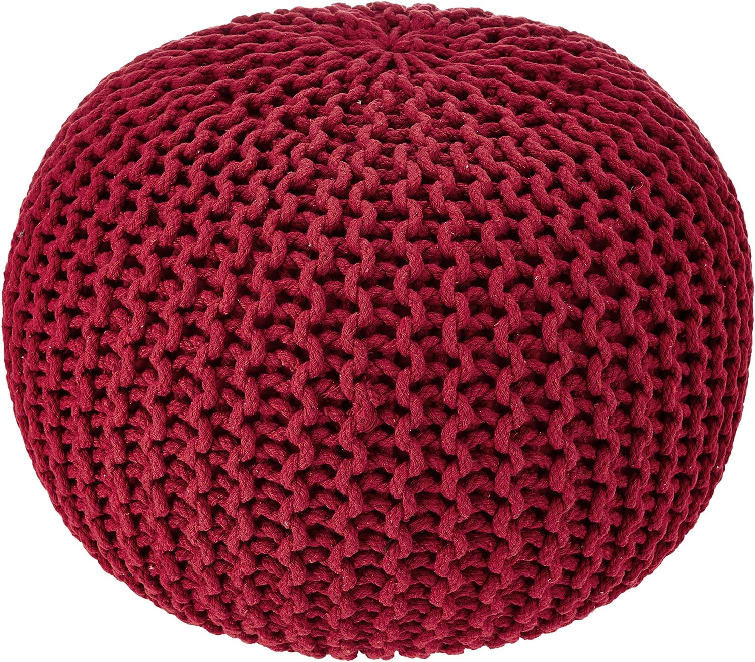REDEARTH Round Pouf Ottoman - Hand Knitted Cable Boho Poof - Foot Stool Bean Bag - Home Décor Stuffed Footrest for Living Room - Nursery - Bedroom - 100% Cotton Poufs (19.5"x19.5"x14") - Red