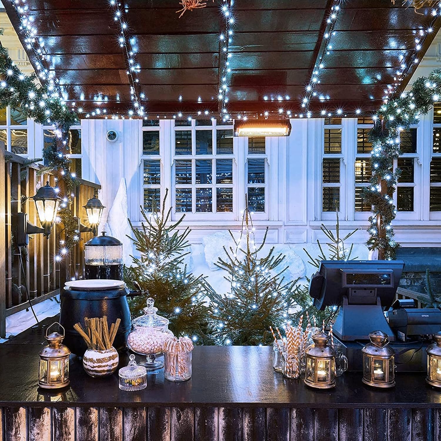 - 【Safe and Waterproof】The solar string lights outdoor waterproof can withstand various extreme weathers (IP44), including heavy rain and snow. Super suitable for indoor and outdoor Christmas decor(Do not soak). Withstand heat(The insulated copper wire keeps the lights at a low temperature so they are safe to touch after many hours of use). Low energy consumption& highly safe!