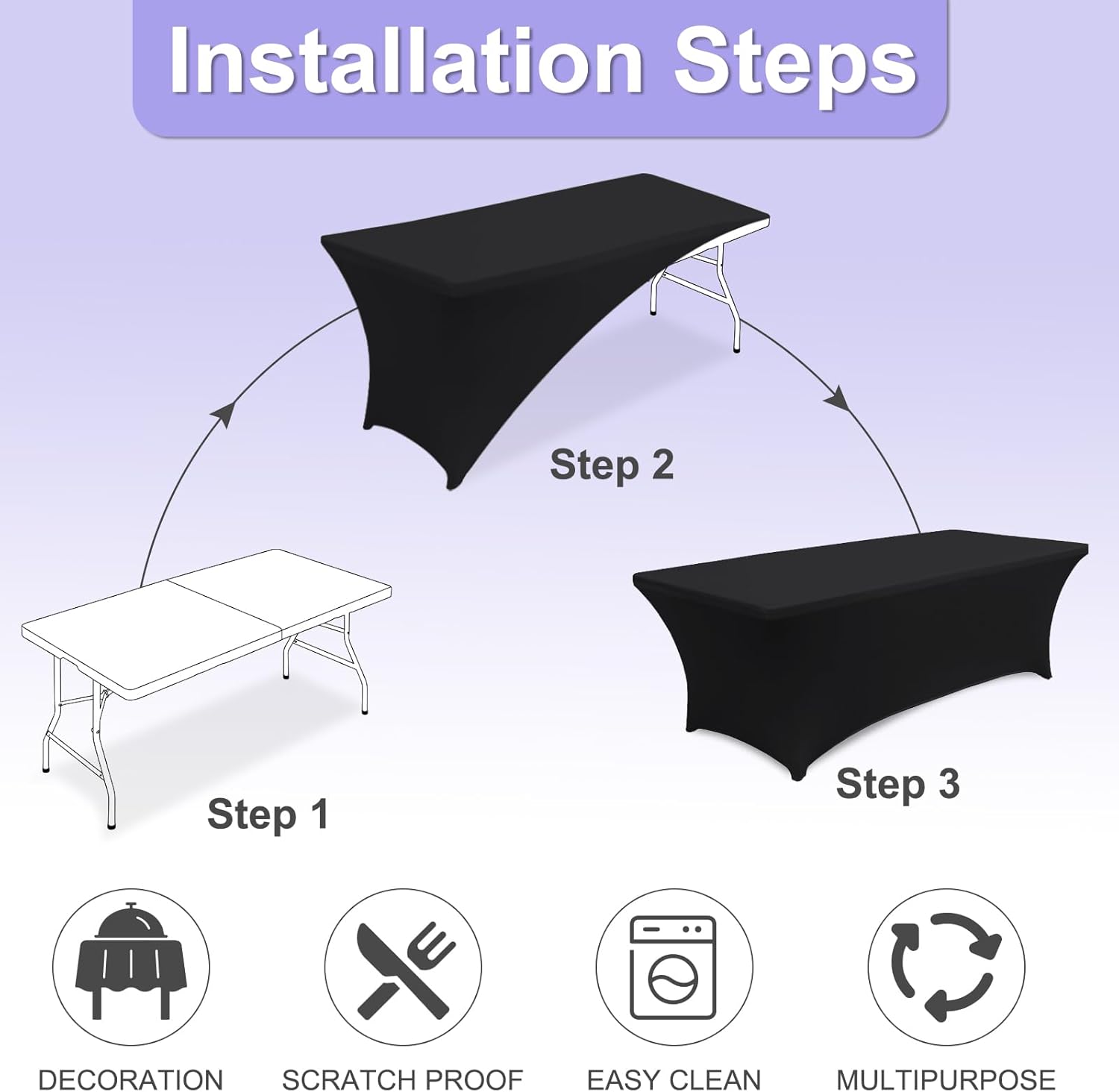 ABCCANOPY 8 FT Black Spandex Table Cover Stretch Fitted Wrinkle Resistant Tablecloth Reuse for Rectangular Folding Table Patry Event Wedding Banquet Protector