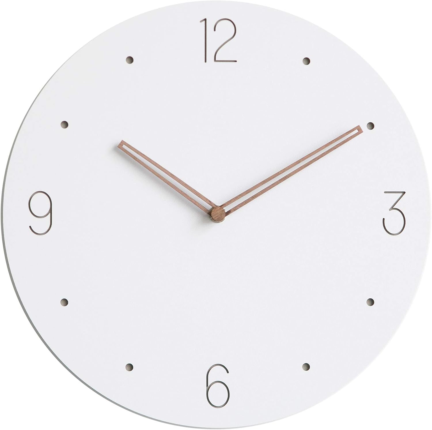 Stephanie Imports Modern Minimalist Wood on White Silent Wall Clock