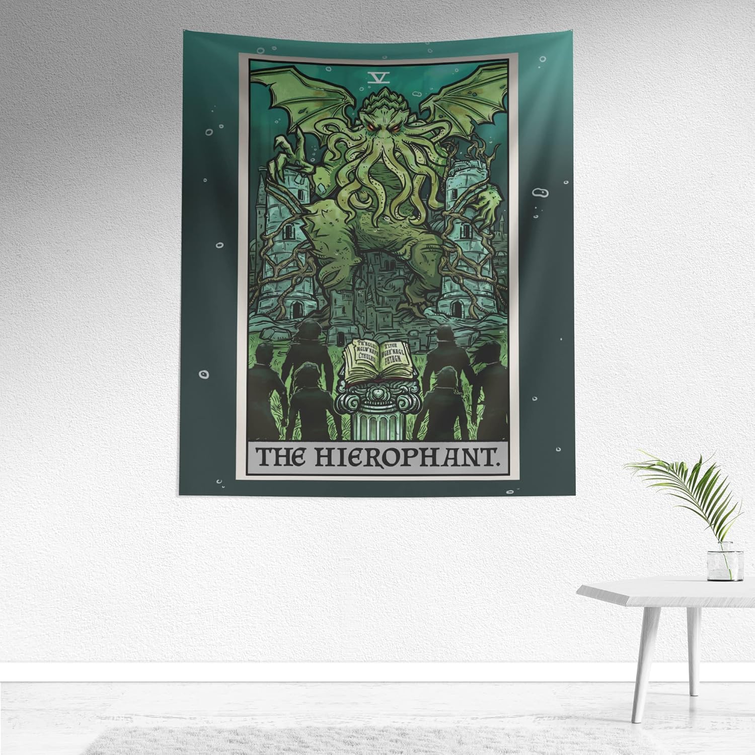 Cthulhu The Hierophant Tarot Card Tapestry Wall Hanging H.P. Lovecraft Horror Home Decor Halloween Wall Art (60" x 50")