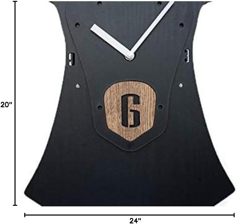 - This large clock is in the shape of a reindeer and measures 20”X 24” and features a black Pinewood MDF ecoboard dial that is 0.15” thick. The clock hands are made of silver aluminum. Operates with 1 AA battery which is not included.