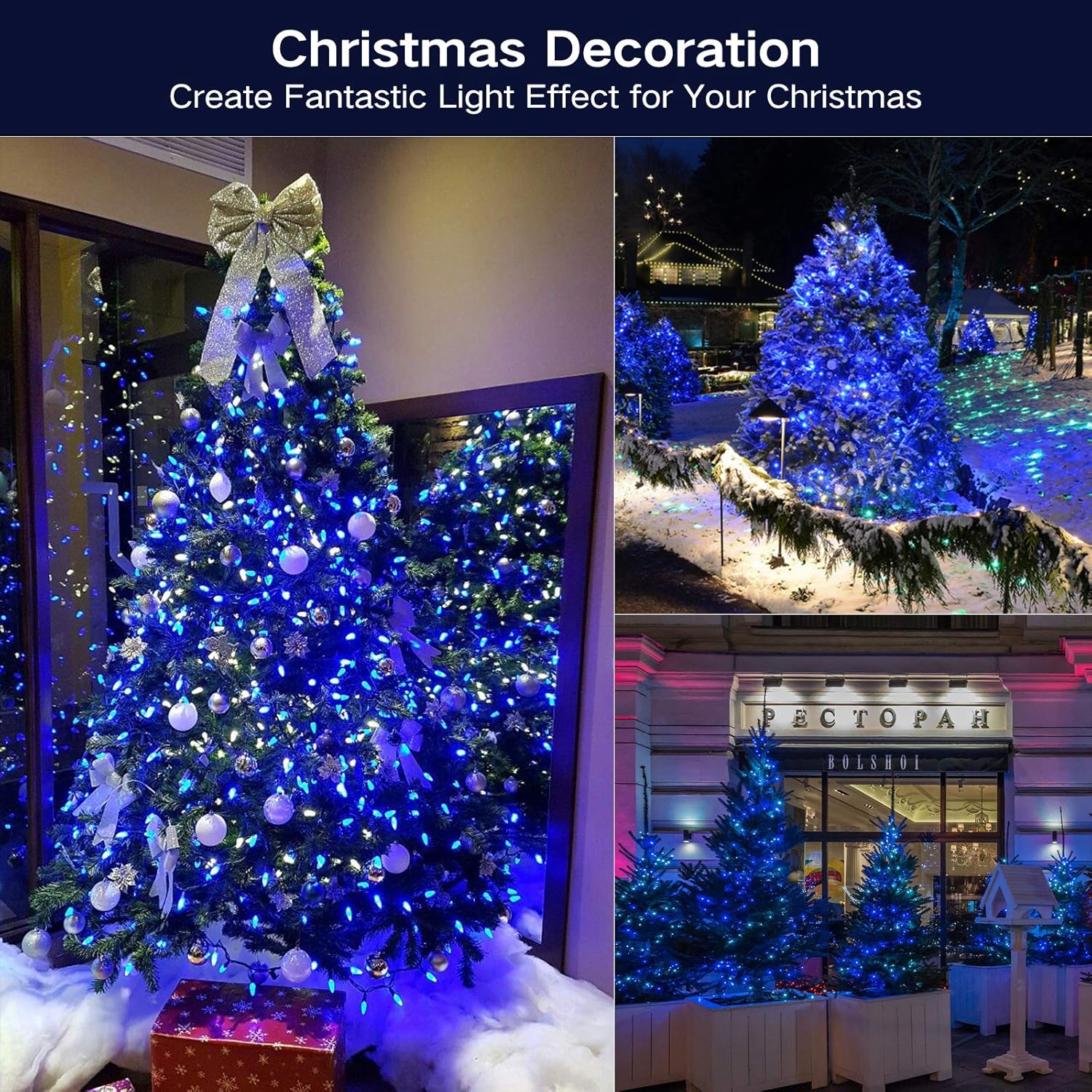 - Indoor & Outdoor Lighting Decor: UL Certificated, green wire combine with blue lights perfect for Christmas trees, wreaths, wrapping trees, patios, pergolas, bushes, hedges, fences, pillars, weddings, holidays, prom, dance functions, restaurants, bars or wherever decoration lighting is wanted! Note: Please kindly protect these string lights from immersing in the water!