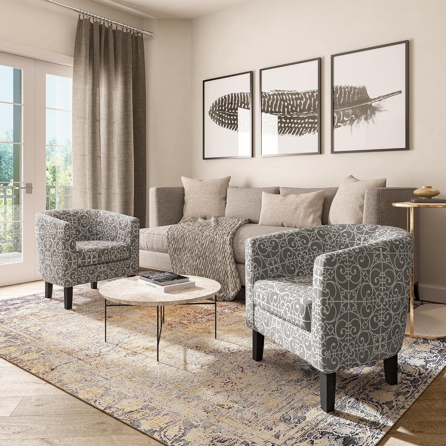 BELLEZE Accent Barrel Chair, Linen Round Chair Club Tub Sofa Corner Chair with Flared Legs and Cozy Soft Padding for Living Room Bedroom Waiting Room - White & Gray