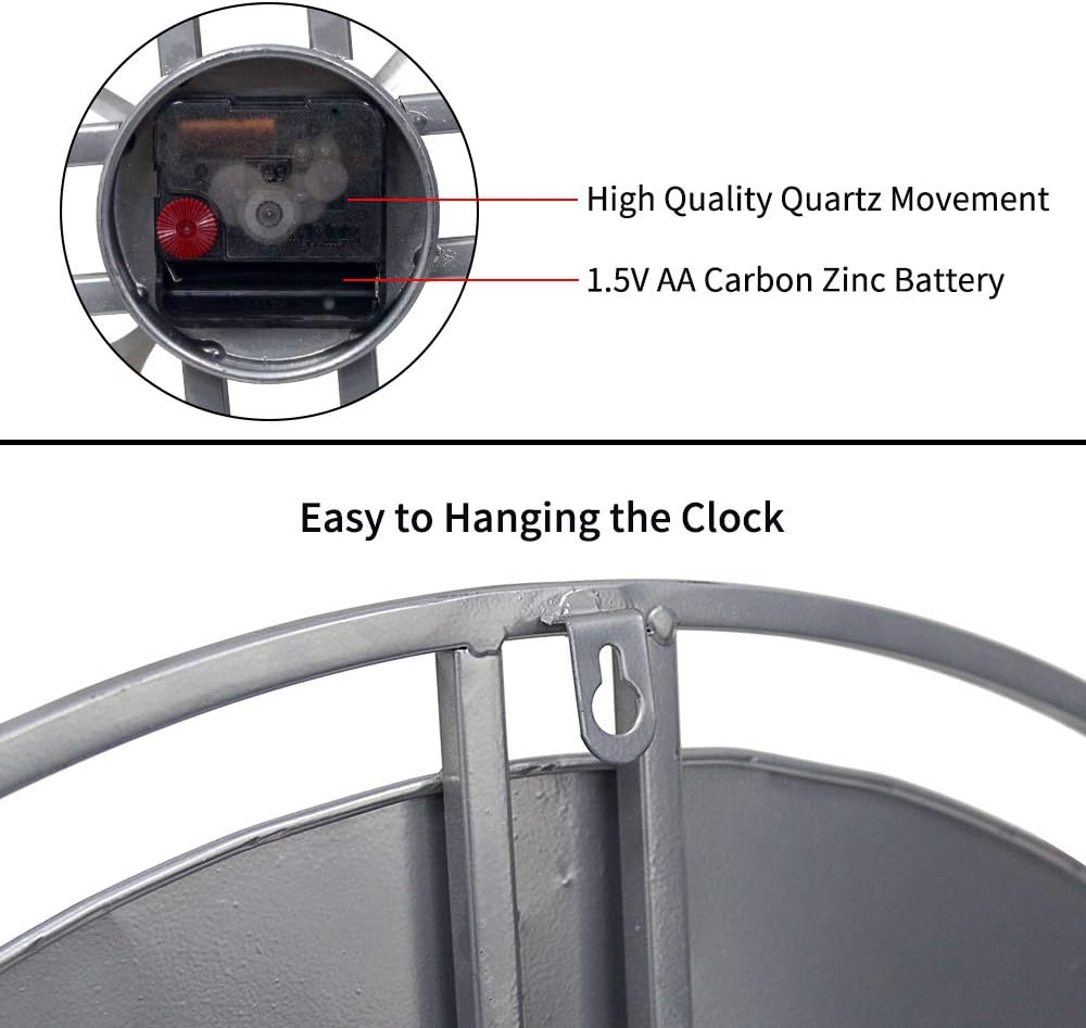 30 inch Large Wall Clock Decorative Solid Metal Retro Decor for Home Farmhouse Living Room
