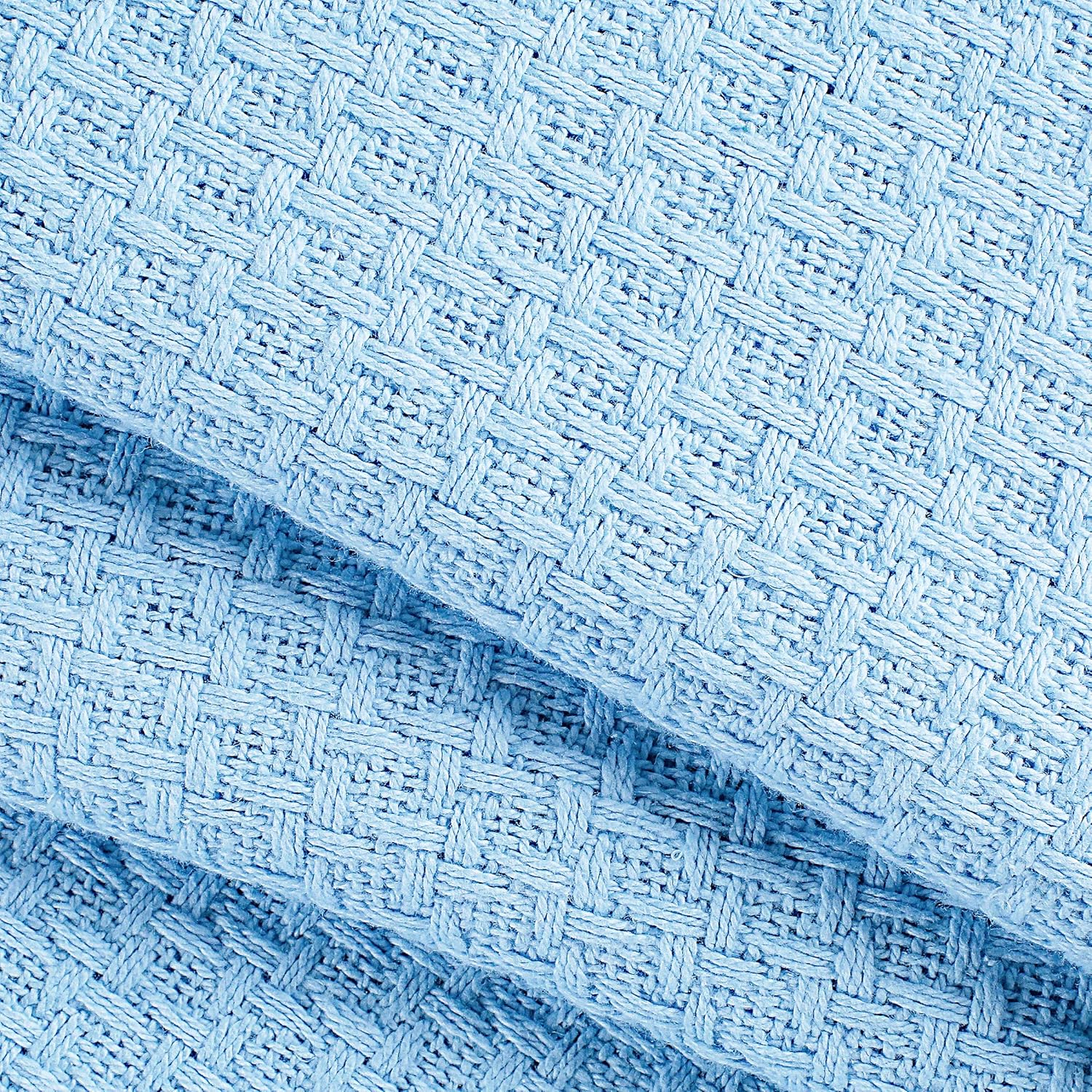 Elvana Home 100% Cotton Bed Blanket, Breathable Bed Blanket Twin Size, Cotton Thermal Blankets Twin, Perfect for Layering Any Bed for All Season, Light Blue